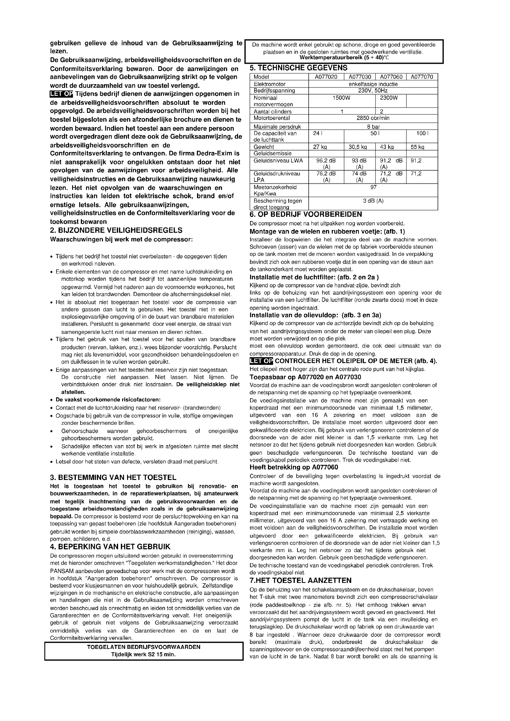 Compressor Catalogusnr. A077020/077030/077060 Partijnummer: ..................................................... (verder het Product te noemen) Aankoopdatum van het Product: …………………………………. Stempel van de verkoper: ………………….. Datum en handtekening van de verkoper: