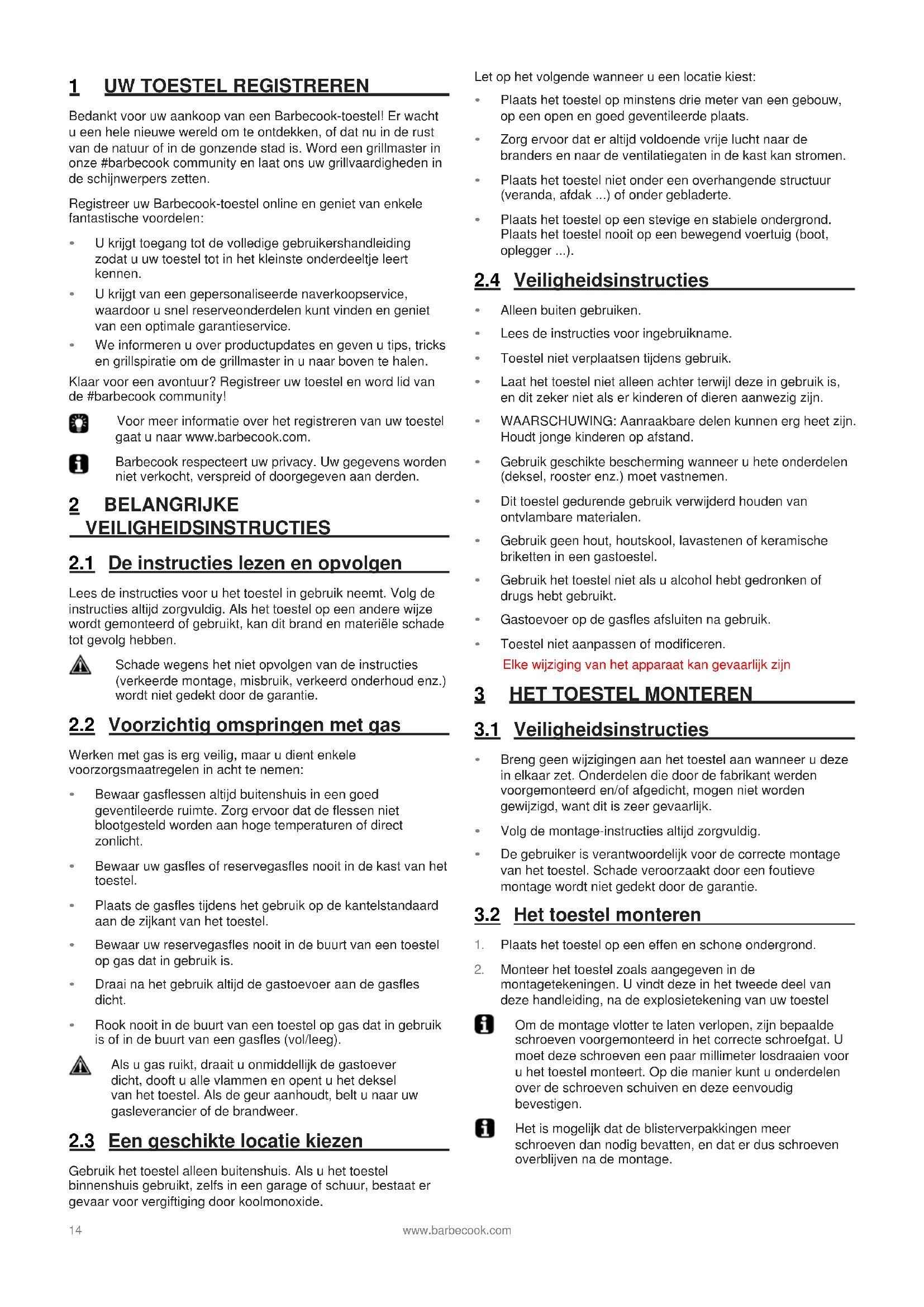 We informeren u over productupdates en geven u tips, tricks en grillspiratie om de grillmaster in u naar boven te halen. Klaar voor een avontuur? Registreer uw toestel en word lid van de #barbecook community! Voor meer informatie over het registreren van uw toestel gaat u naar www.barbecook.com.