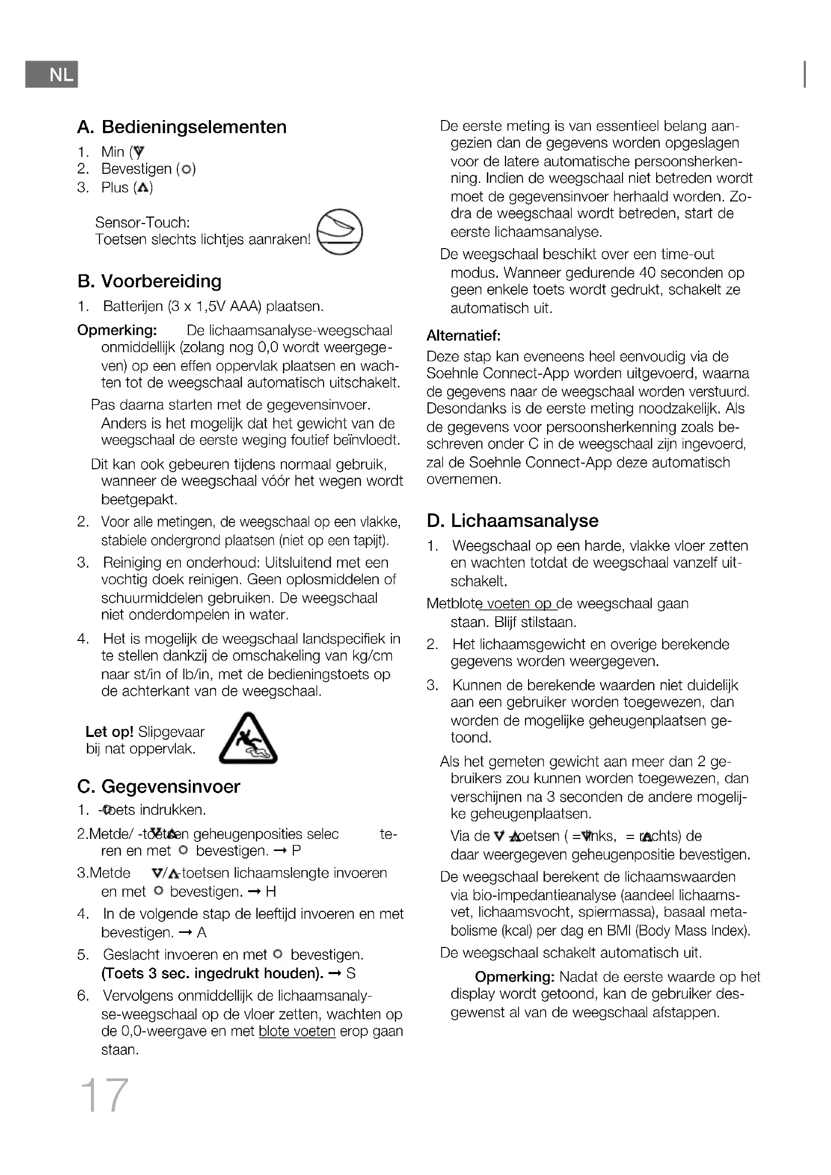 zal de Soehnle Connect-App deze automatisch overnemen. D. Lichaamsanalyse