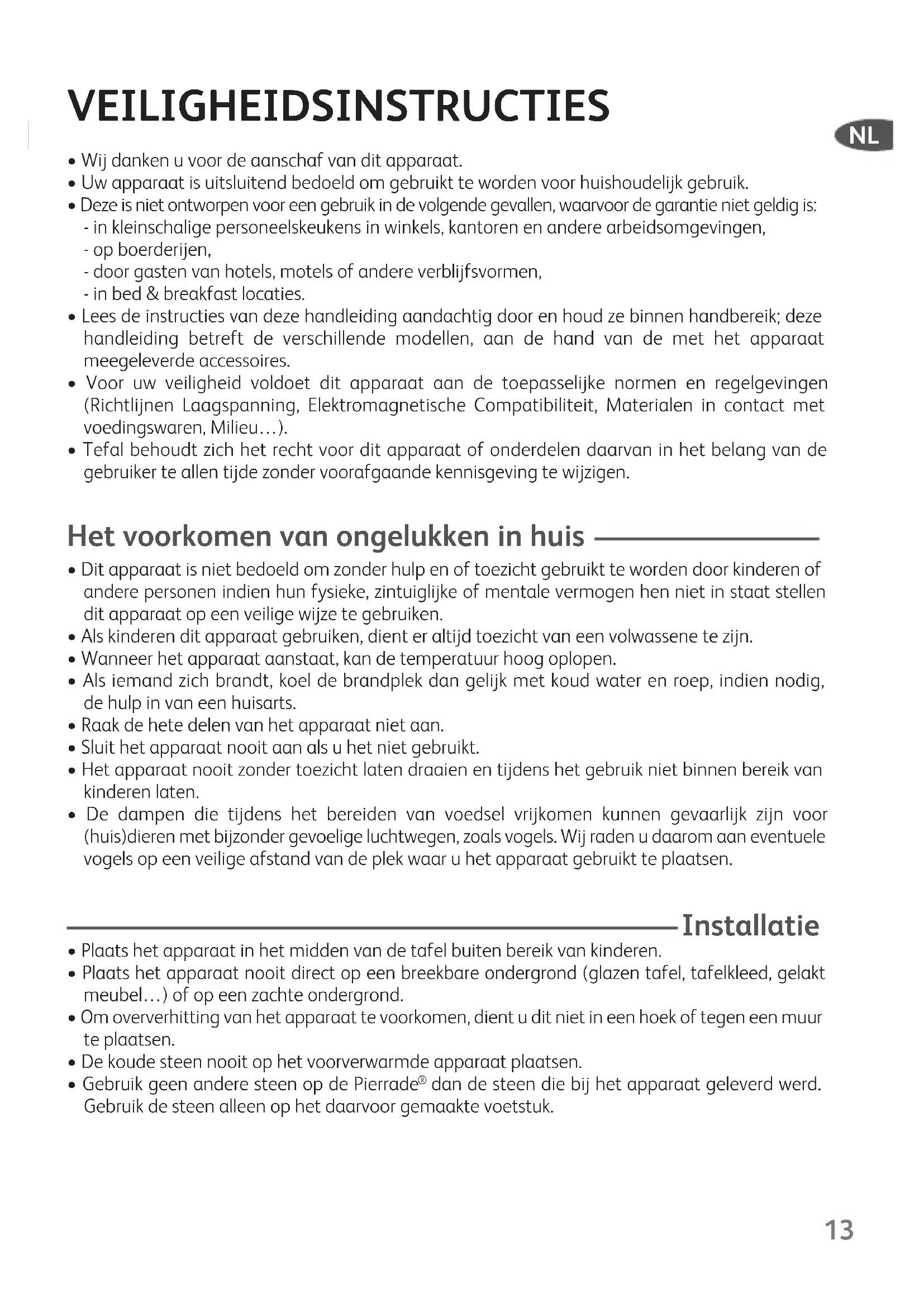 GEBRUIKSAANWIJZING Pierrade PI131O TEFAL