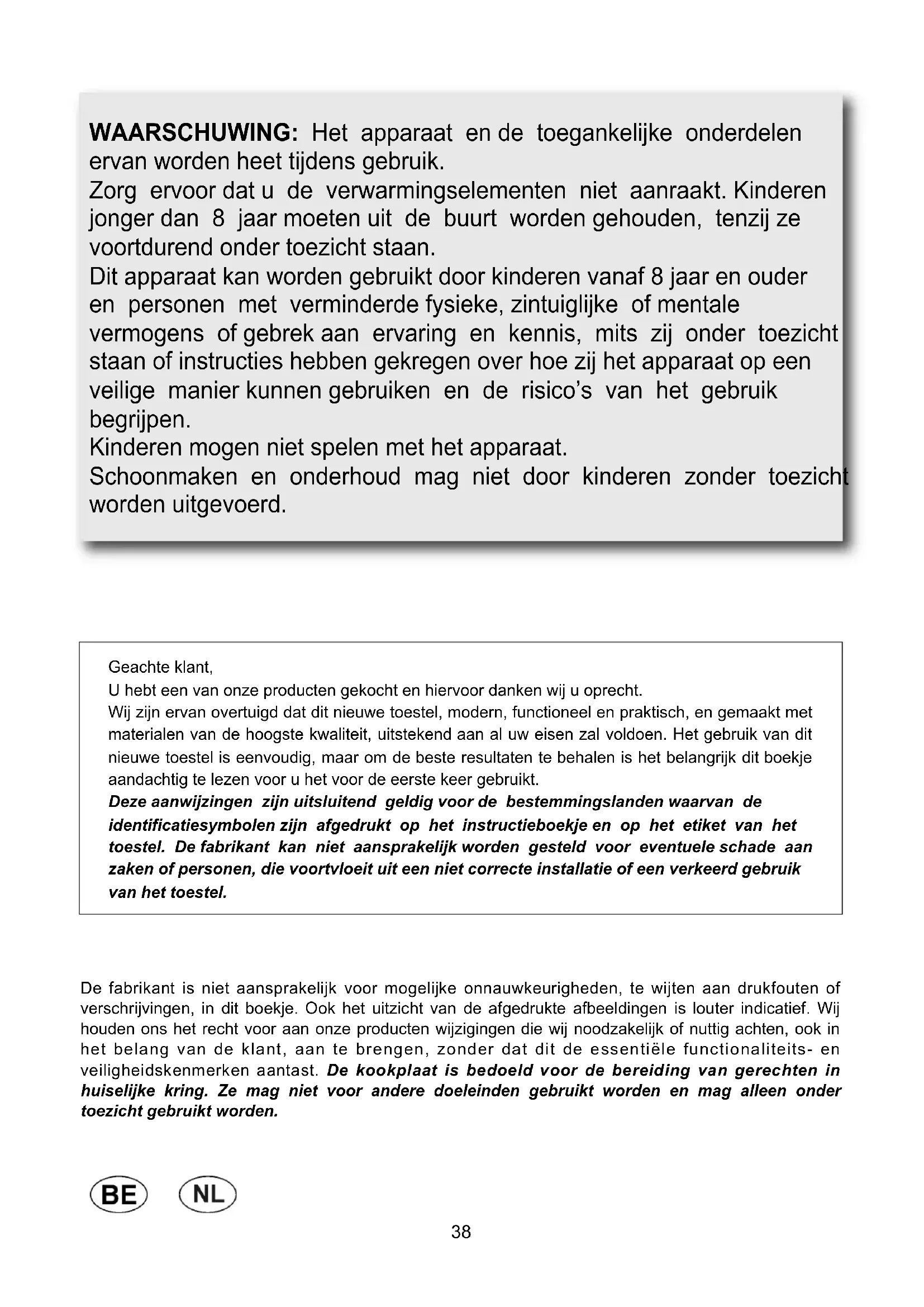 WAARSCHUWINGEN EN ADVIES VOOR DE