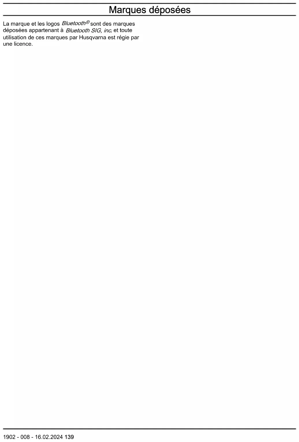 Huskvarna, TBD Claes Losdal, Development Manager/Garden Products, Husqvarna AB Verantwoordelijk voor technische documentatie 204 1902 - 008 - 16.02.2024Geregistreerde handelsmerken Het Bluetooth