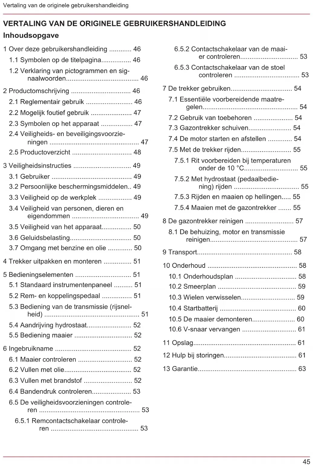 7.5.4 Maaien met de gazontrekker ....... 55