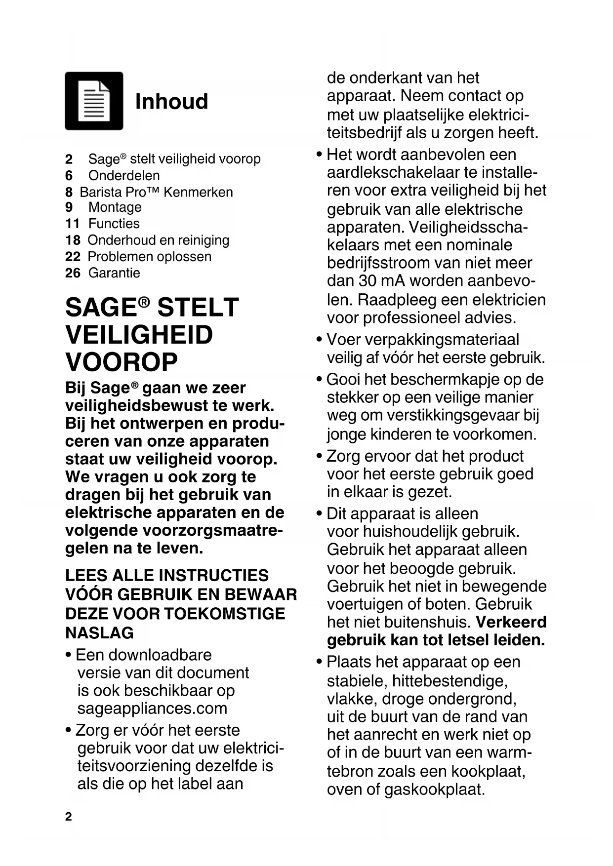 - Een downloadbare versie van dit document is ook beschikbaar op sageappliances.com