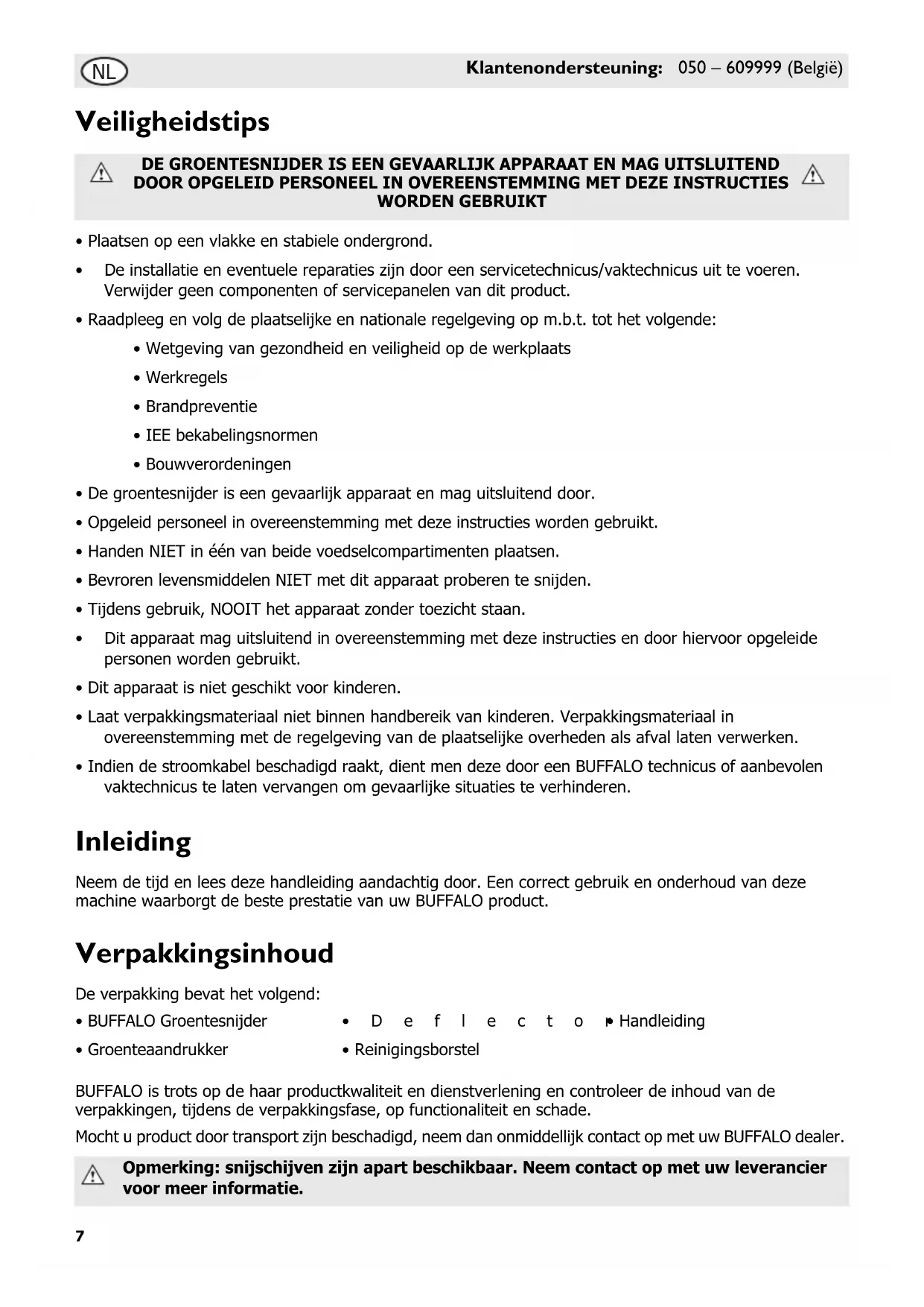 Mocht u product door transport zich beschadigd, neem dan onmiddelijk contact op met uw BUFFALO dealer.