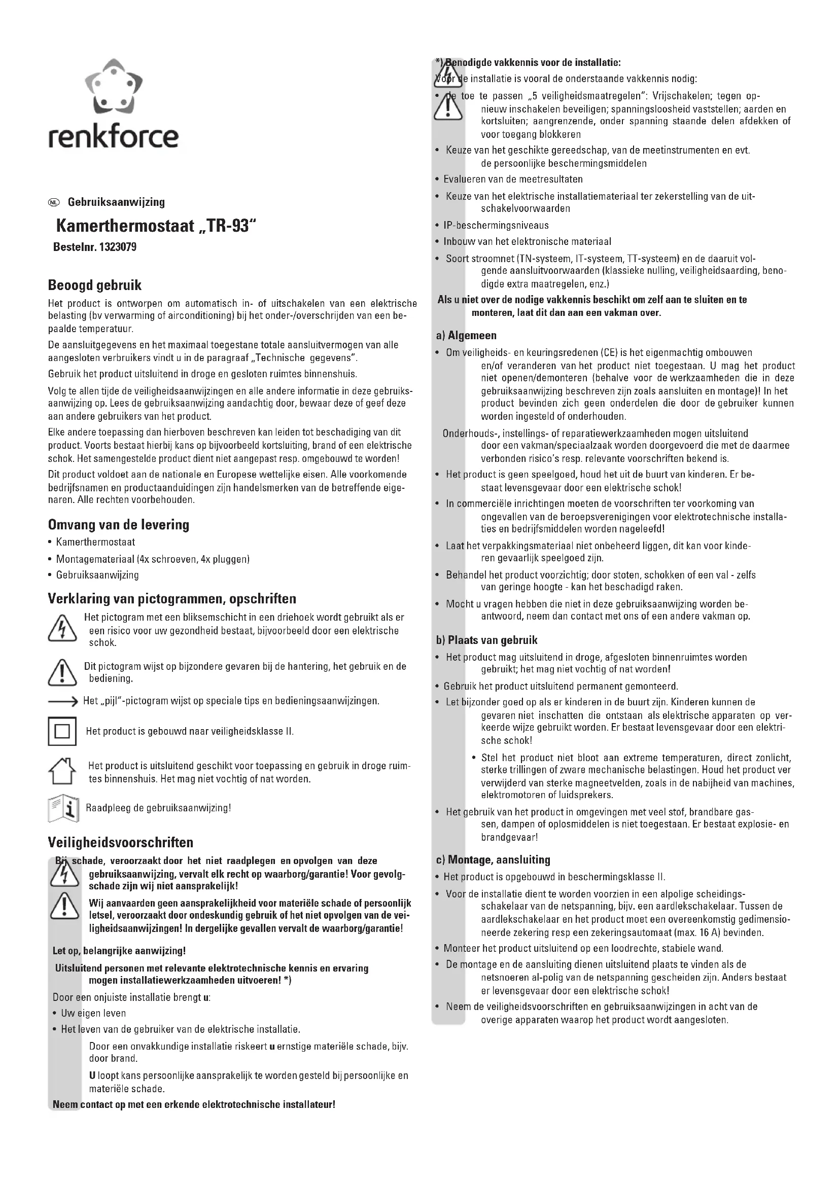 GEBRUIKSAANWIJZING TR93 Renkforce