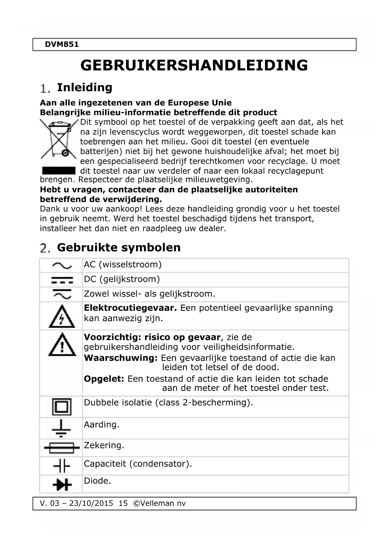 DVM852 - Multimeter VELLEMAN - Gratis gebruiksaanwijzing en handleiding