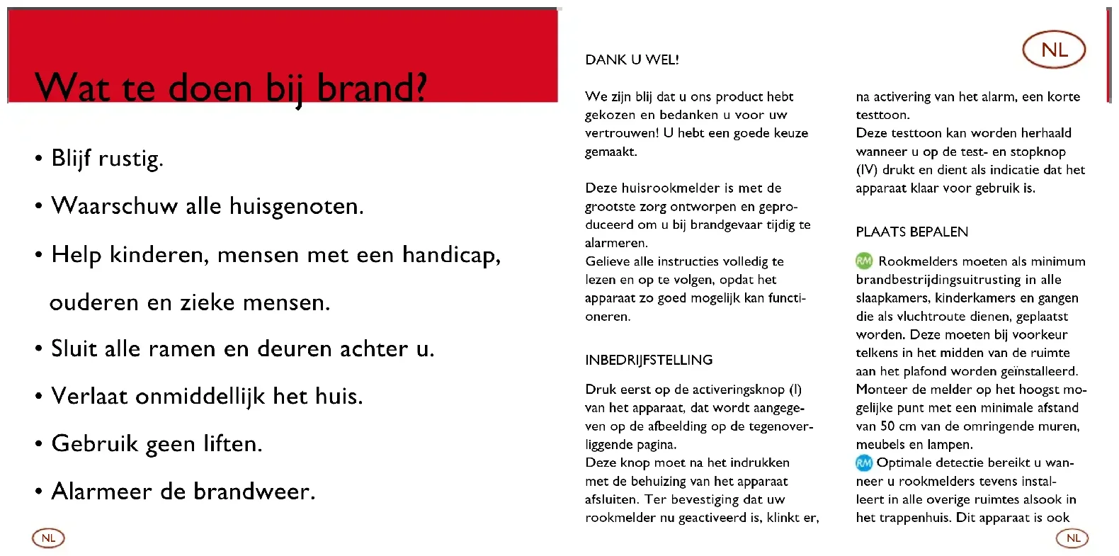 VAN HET PRODUCT. Afvalverwerking: Dit product mag volgens de wet niet met het huishoudelijk afval worden afgevoerd. Stuur het af te voeren apparaat naar de fabrikant voor verdere verwerking of geef de rookmelder bij uw plaatselijke afvalverwerker af. Houd er rekening mee dat u het milieu schade kunt berokkenen wanneer het apparaat niet op de juiste wijze wordt verwerkt! VERKLARING VAN OVEREENSTEMMING Dit product is volgens richtlijn 89/106 EWG in overeenstemming met EN 14604:2009 getest en gecerticeerd als een voor de bouw bestemd product. De productie wordt bewaakt door middel van regelmatige en onaf- hankelijke controles op de naleving van de wettelijke en normatieve eisen. BEDOELD GEBRUIK Gebruik het apparaat uitsluitend voor het doel waarvoor het ontworpen en gemaakt is! Elk ander gebruik geldt als oneigenlijk! Dit product mag alleen voor het(de) volgende doeleind(en) gebruikt worden: Vuur- en rookdetectie in parti- culiere huishoudens Deze rookmelder heeft een warmte- waarschuwingsfunctie. Het is echter geen warmtedetector in de zin van EN 54-5. 12 jaar beperkte garantie Roos Electronics bv garandeert uitsluitend de oorspronkelijke koper van dit product, dat ofwel rechtstreeks bij Roos Electronics bv of via een geautoriseerde wederverkoper of distributeur gekocht is, voor een periode van 12 jaar vanaf de datum van aankoop, onder voorwaarden van normaal gebruik en onderhoud, een goed functionerend product. Bewaar de kassabon als bewijs van de datum van aankoop. Dit document is essentieel voor aanspraak op eventuele garantie! De beperkte garantie wordt alleen verleend als het product gebruikt wordt volgens de bijgevoegde gebruiksaanwijzing. Deze beperkte garantie dekt geen schade als gevolg van een ongeval, verkeerd gebruik, misbruik of nalatigheid. Deze beperkte garantie is niet overdraagbaar en is niet van toepassing op kopers die het product niet van één van de Roos Electronics bv erkende wederverkopers of distributeurs gekocht hebben. Dit geldt ook voor internetveilingen, maar is niet daartoe beperkt. Deze beperkte garantie laat uw rechten ten aanzien van het product, die voortvloei- en uit dwingend voorgeschreven wettelijke voorschriften, onverlet. WEEE-Reg.-Nr.DE22615539