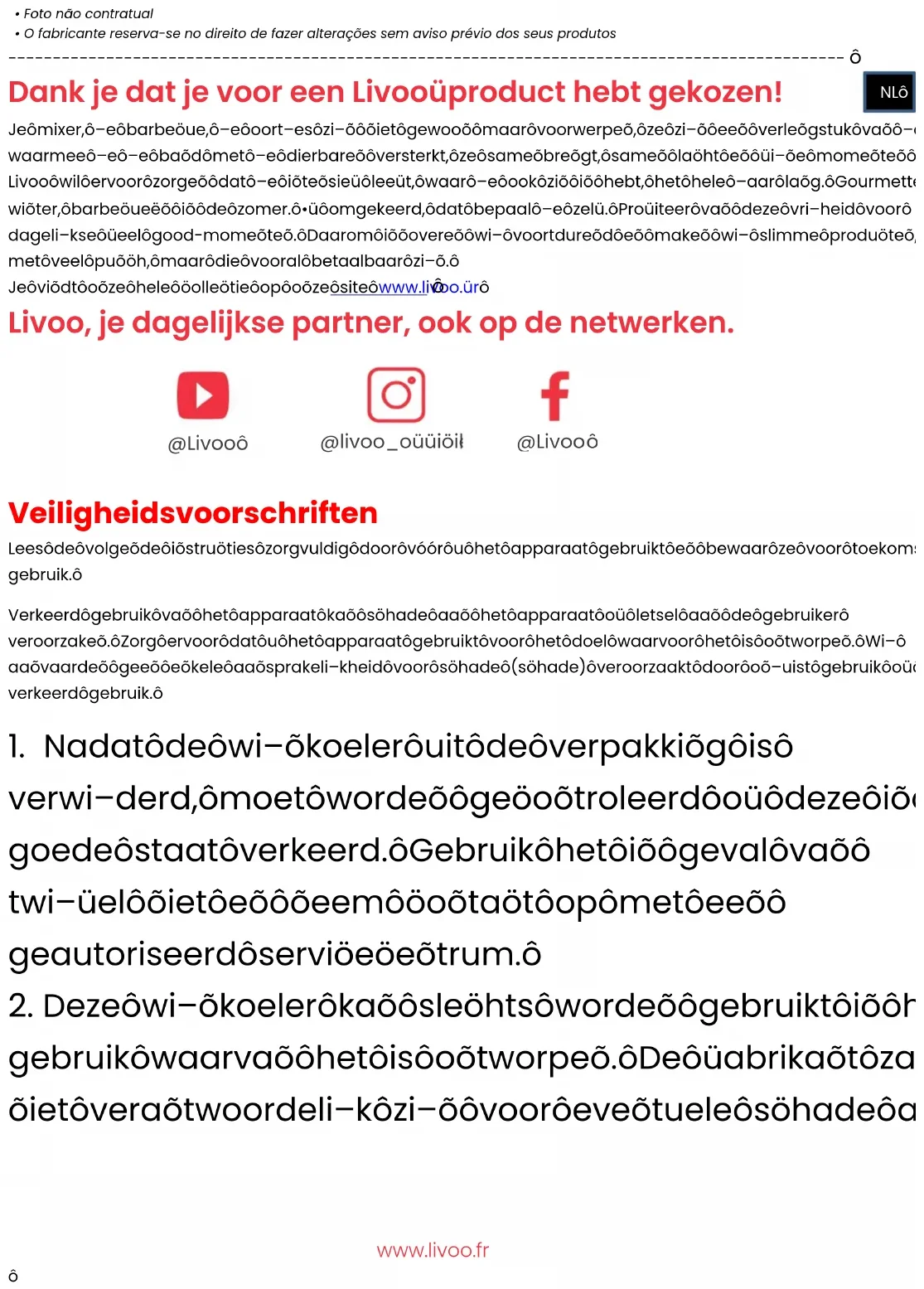 @Livoowww.livoo.fr gevolg van onjuist gebruik of reparaties door ongekwalificeerd personeel.
