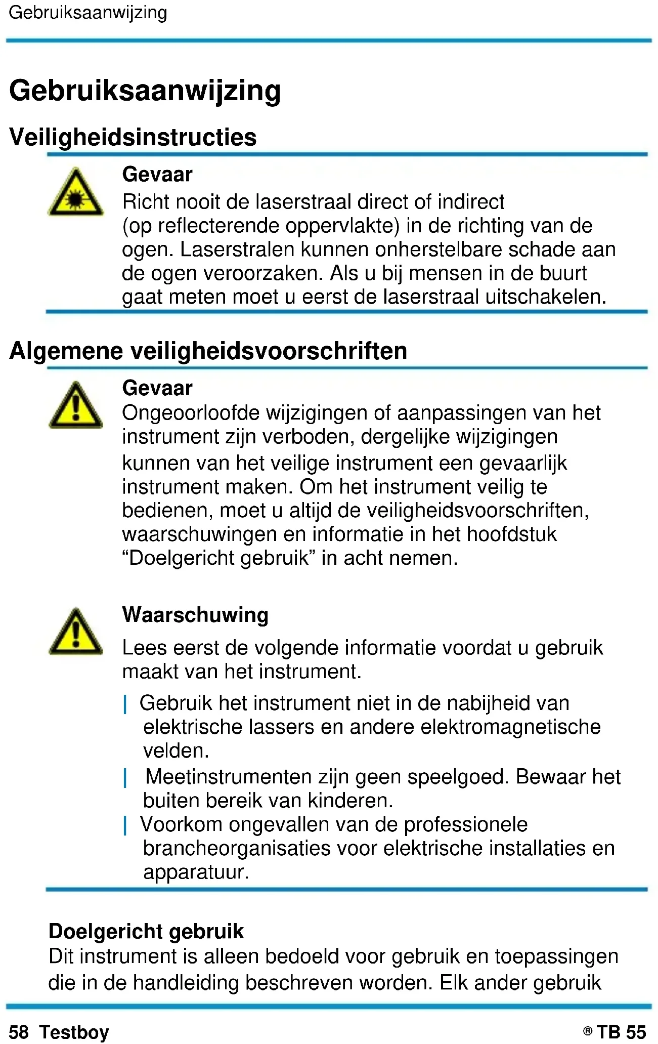 TB 55 Gebruiksaanwijzing Veiligheidsinstructies