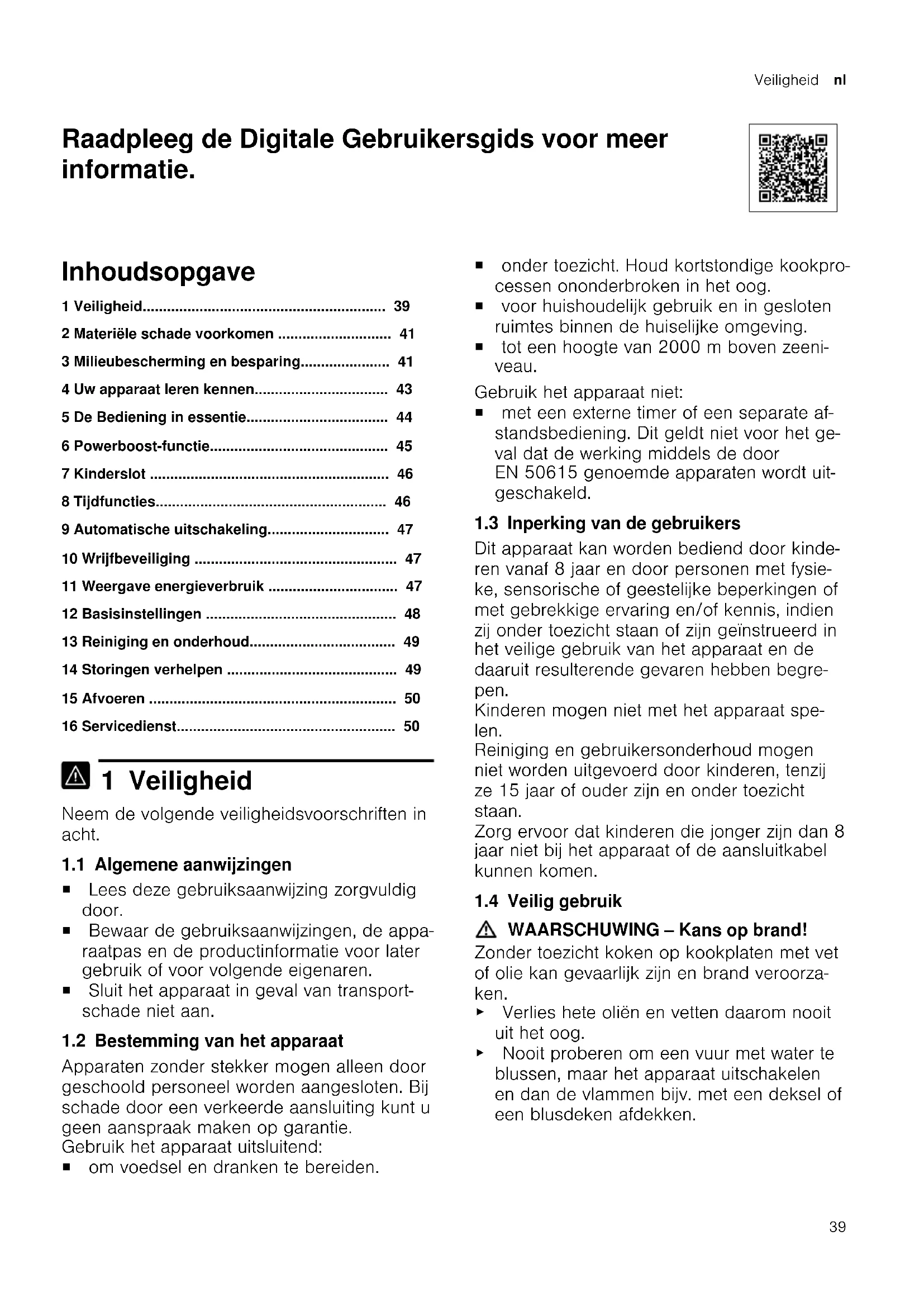 - Raadpleeg de Digitale Gebruikersgids voor meer informatie. Inhoudsopgave 1 Veiligheid p. 39