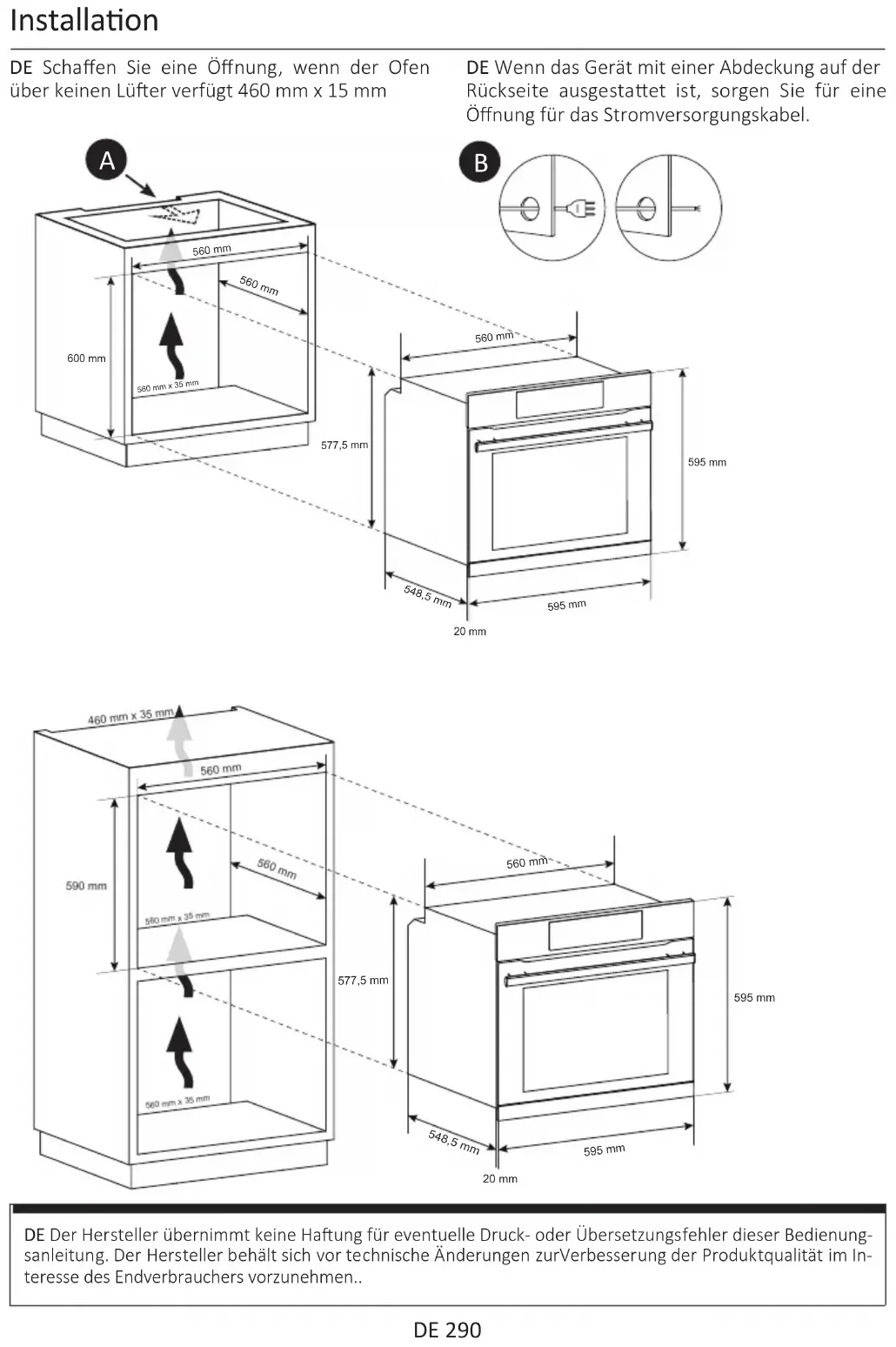 MILIEU Indien mogelijk, vermijd het voorverwarmen van de oven en vermijd om de oven zonder inhoud te laten draaien. Laat de ovendeur niet open alleen wanneer dat nodig is, omdat er warmteverlies ontstaat elke keer dat de oven open staat. Voor een aanzienlijke energiebesparing, schakelt u de oven 5 tot 10 minuten uit voor het voorziene ein- de van de bereidingsjd en gebruik de warmte die de oven blij genereren. Houd de dichngen schoon en in goede staat, om energieverlies te voorkomen. Als u een contract hee met een laag energie tarief, kunt u gebruik maken van het “uitgesteld koken”. Deze zal uw programma lat- en starten in een periode waar u aan een voor- delig tarief kookt. Dit helpt u bij het besparen van energie.NL 310 Installae 560 mm560 mm600 mm560 mm x 35 mm595 mm560 mm548,5 mm595 mm577,5 mm20 mm 560 mm560 mm590 mm 560 mm x 35 mm 560 mm x 35 mm 460 mm x 35 mm 595 mm 560 mm 548,5 mm 595 mm 577,5 mm 20 mm