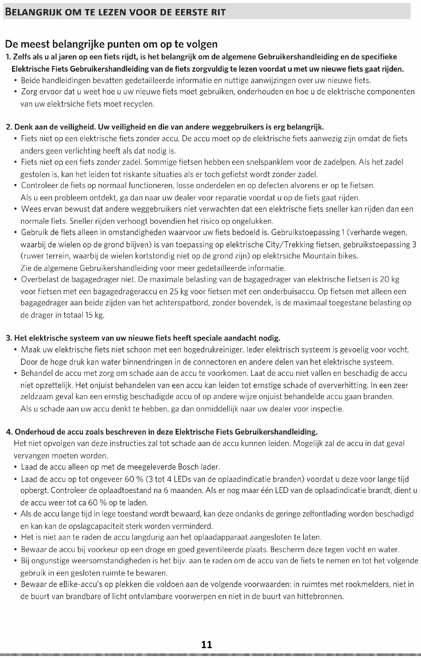 4. Onderhoud de accu zoals beschreven in deze Elektrische Fiets Gebruikershandleiding.