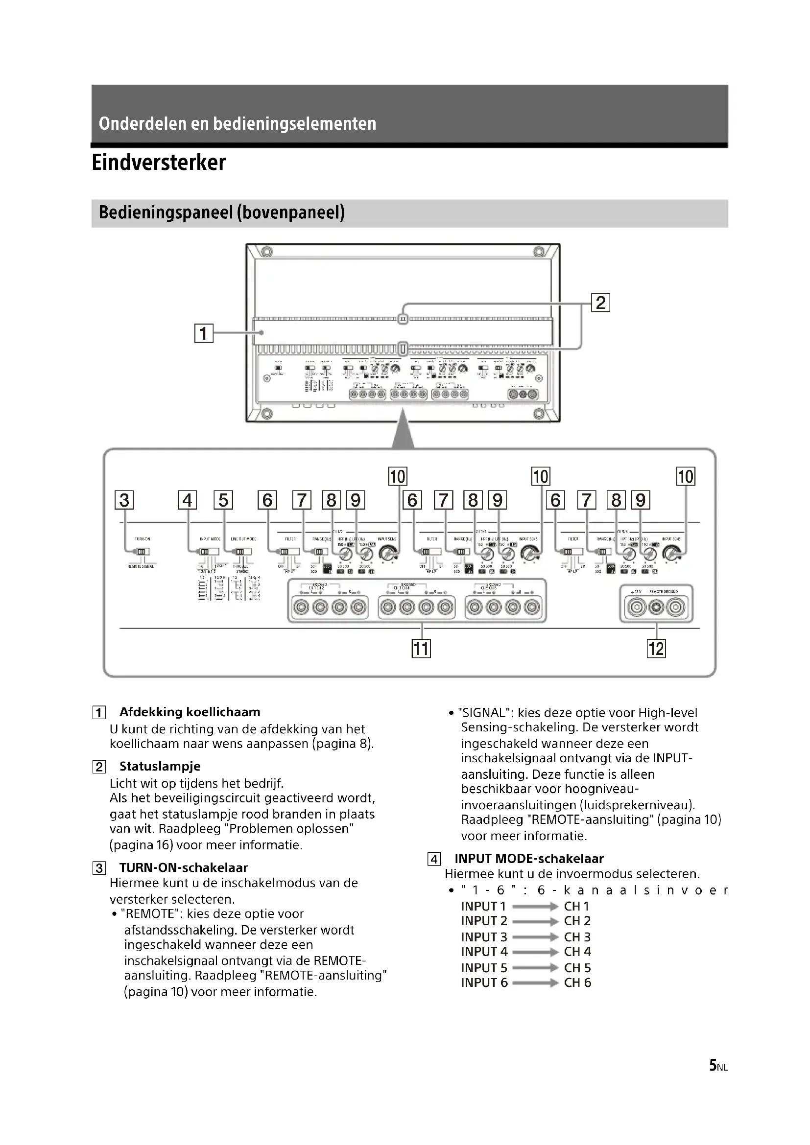 - Onderdelen en bedieningselementen Eindversterker p. 5