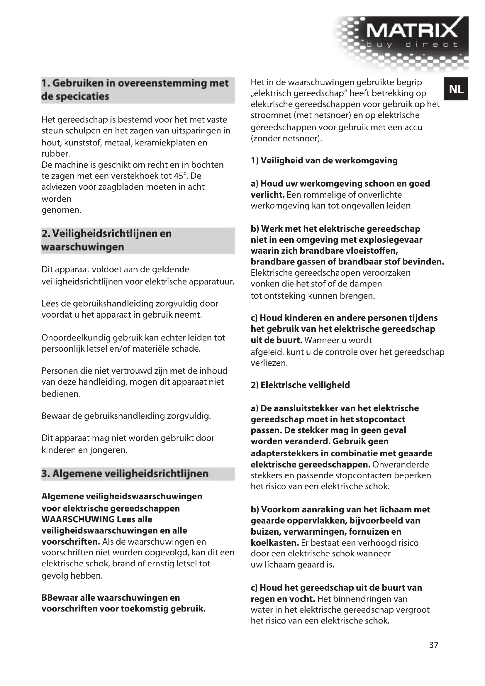 Download de handleiding voor uw Zaag in PDF-formaat gratis! Vind uw handleiding EJS 750-L - MATRIX en neem uw elektronisch apparaat weer in handen. Op deze pagina staan alle documenten die nodig zijn voor het gebruik van uw apparaat. EJS 750-L van het merk MATRIX.