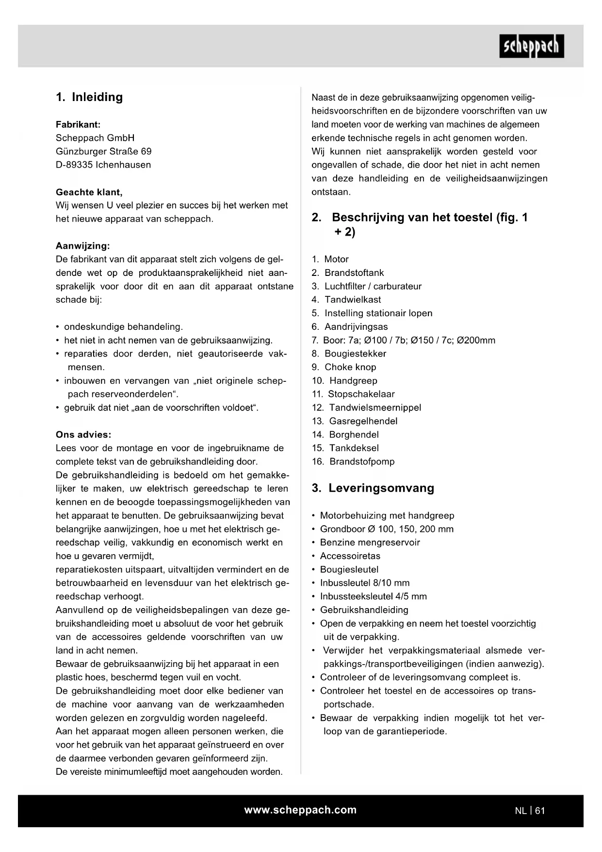 - De machine mag uitsluitend voor werkzaamheden worden gebruikt waarvoor deze is vervaardigd en in deze gebruikshandleiding is omschreven.www.scheppach.com