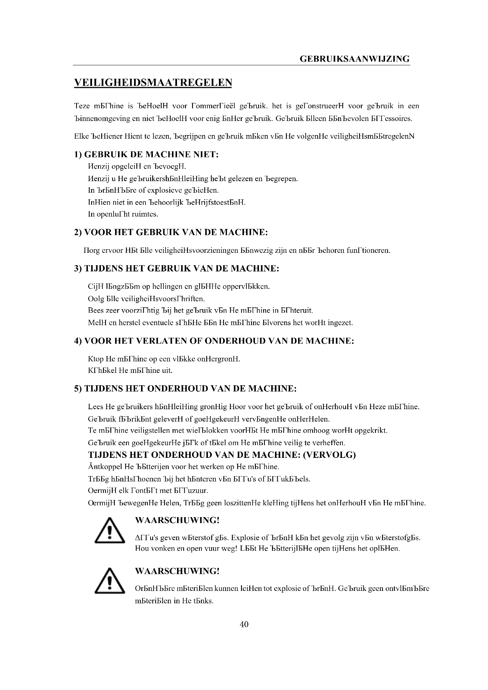 1) GEBRUIK DE MACHINE NIET: