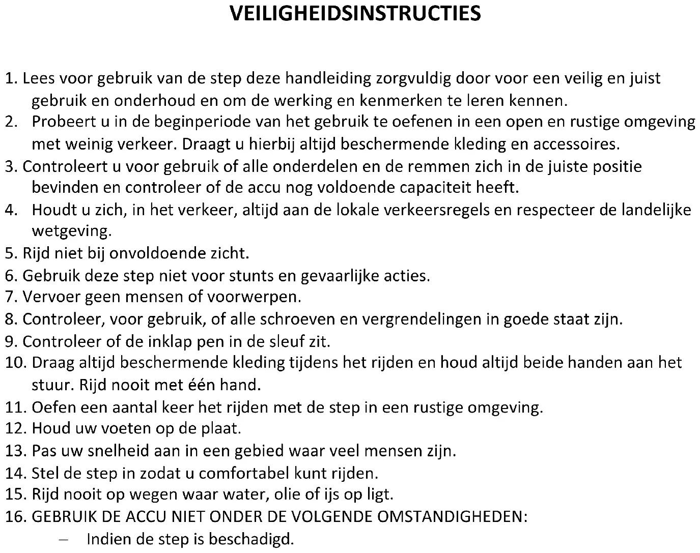 6. Gebruik deze step niet voor stunts en gevaarlijke acties.