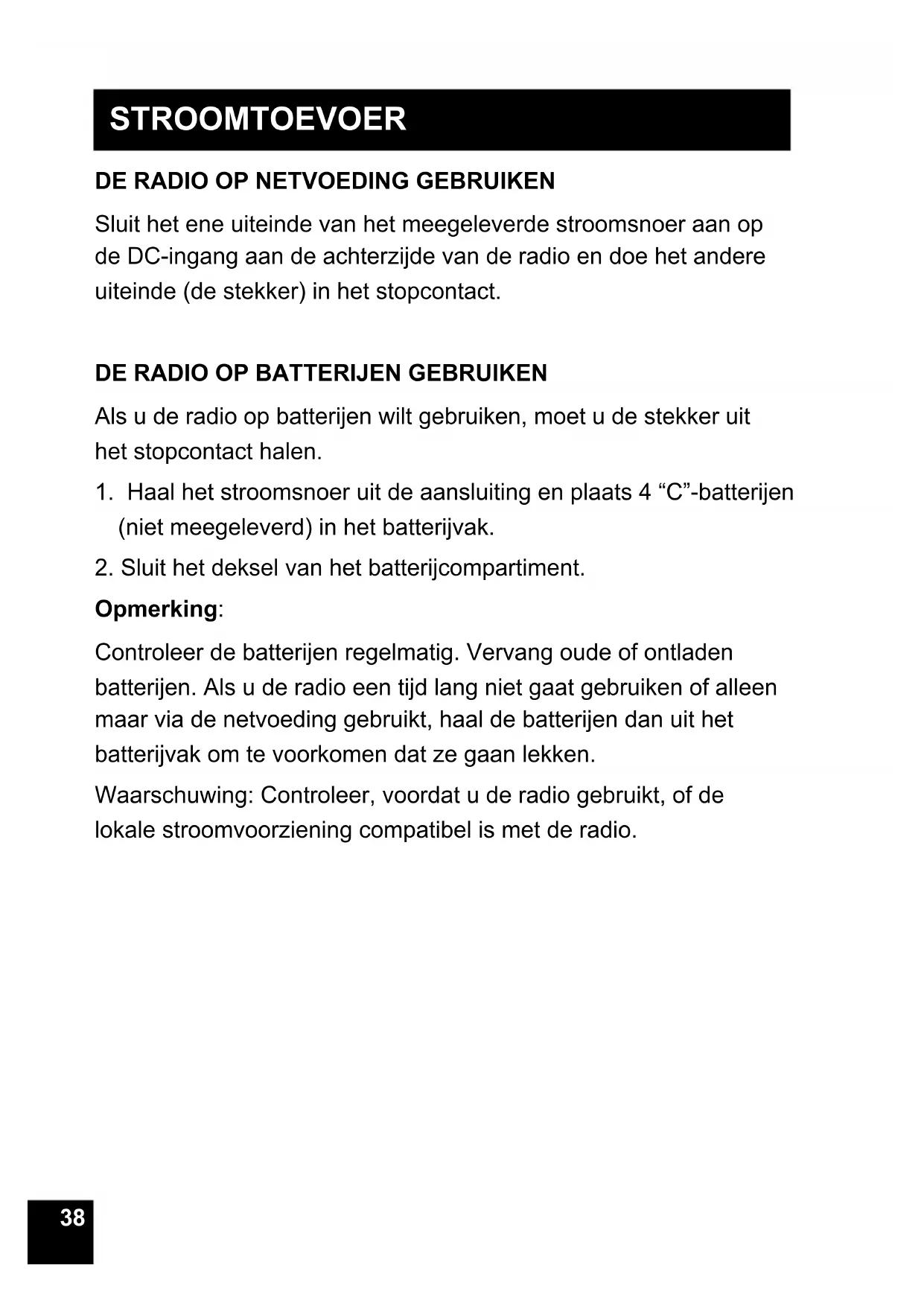 DE RADIO OP BATTERIJEN GEBRUIKEN