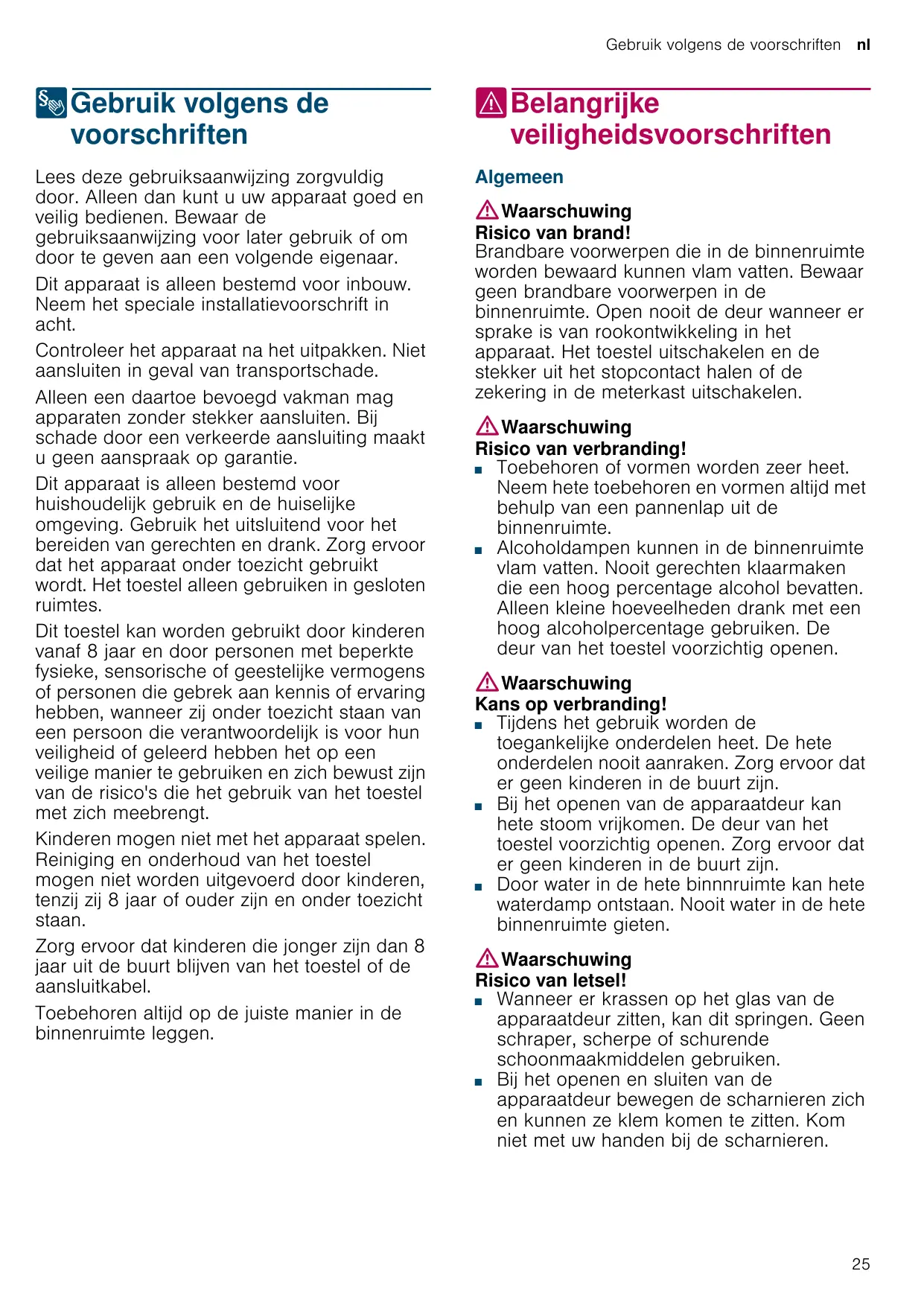 8 Gebruik volgens de voorschriften . . . . . . . . . . 25 ( Belangrijke veiligheidsvoorschriften . . . . . . . . 25