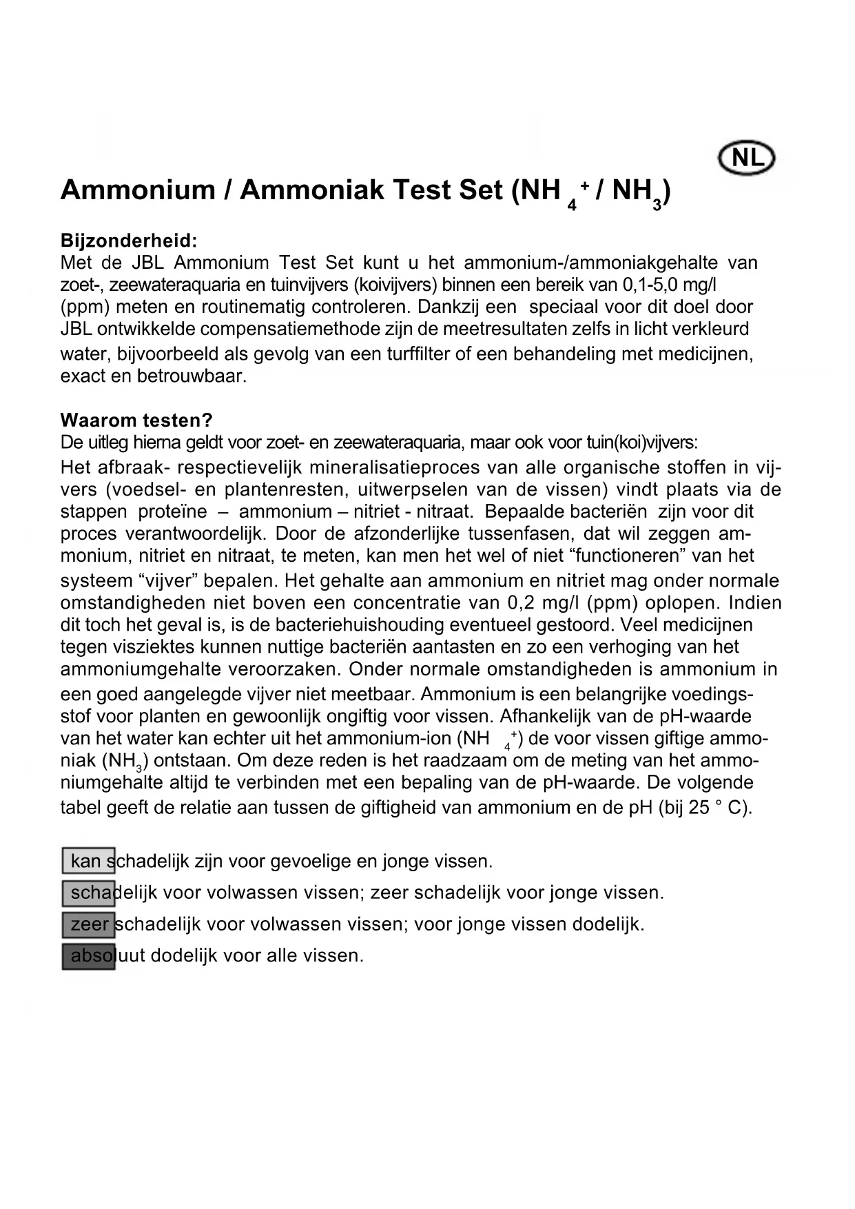 GEBRUIKSAANWIJZING NH4 Test JBL