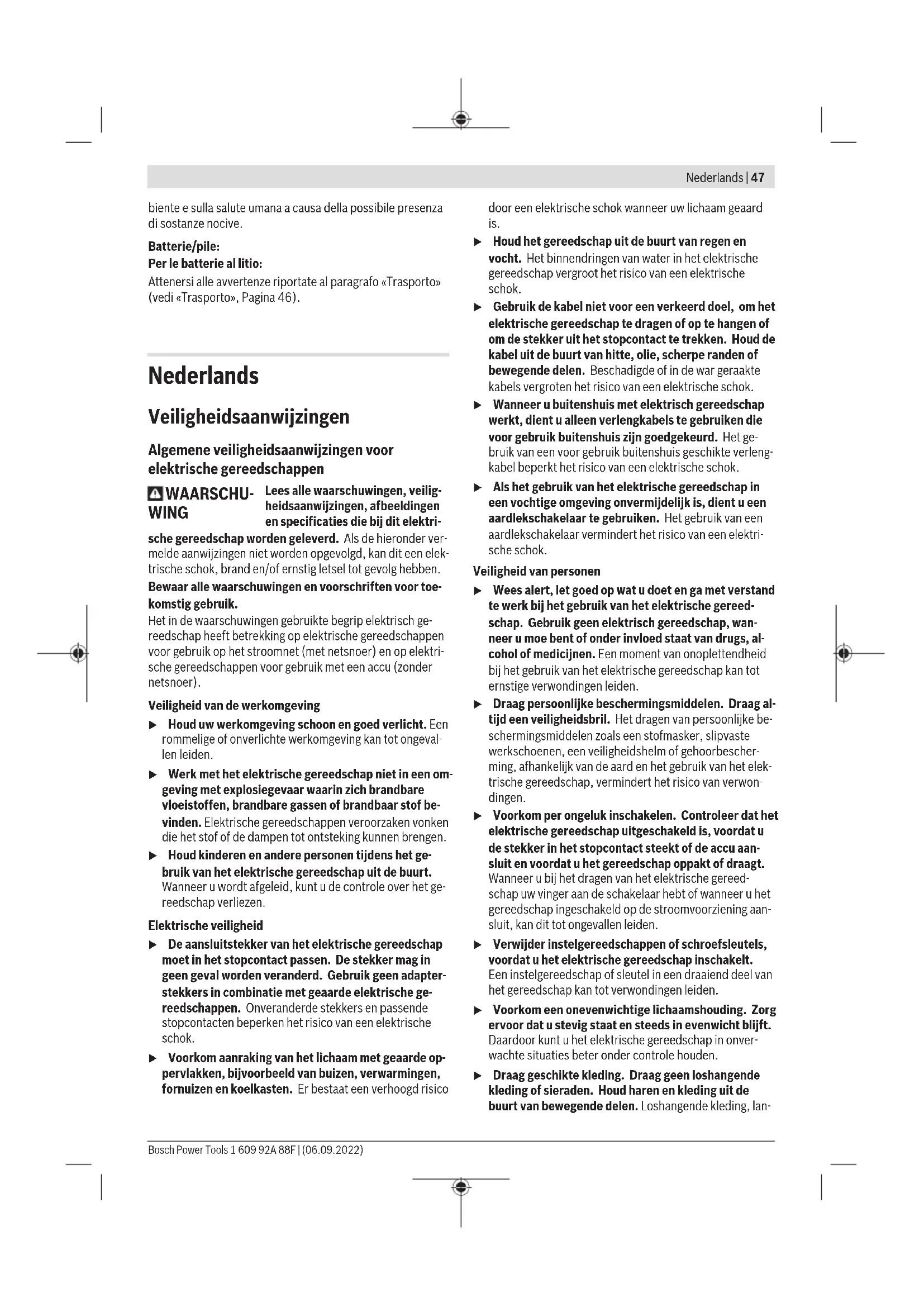 en bij opslag °C –5...+50 Aanbevolen accu's PBA 18V...W-. Bosch Power Tools 1 609 92A 88F | (06.09.2022)50 | Nederlands Accu-multischuurmachi-