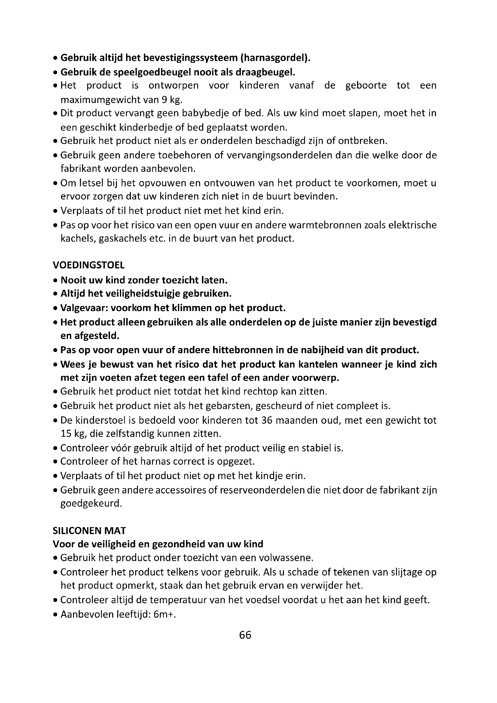 - Gebruikيgeenيandereيaccessoiresيofيreserveonderdelenيdieيnietيdoorيdeيfabrikantيzijnي goedgekeurd. SILICONEN MAT Voor de veiligheid en gezondheid van uw kind
