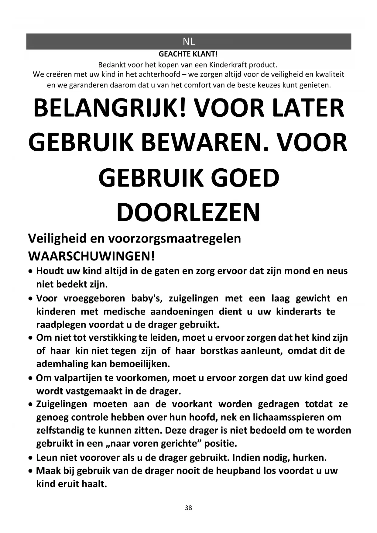 GEACHTE KLANT! Bedankt voor het kopen van een Kinderkraft product. We creëren met uw kind in het achterhoofd – we zorgen altijd voor de veiligheid en kwaliteit en we garanderen daarom dat u van het comfort van de beste keuzes kunt genieten.