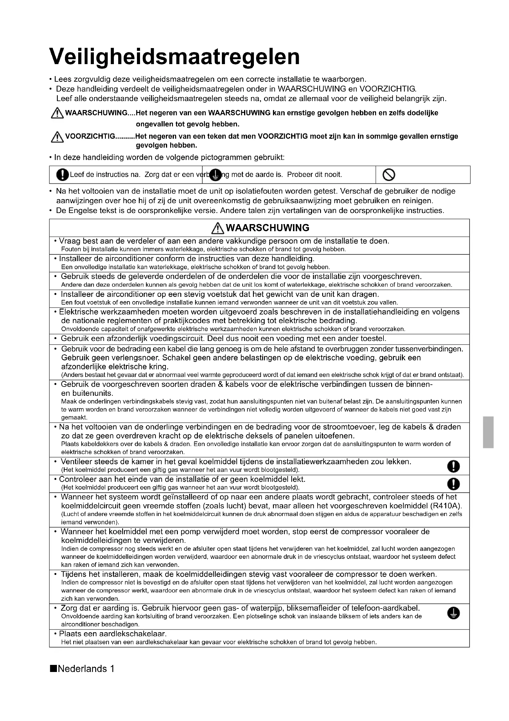 - Lees zorgvuldig deze veiligheidsmaatregelen om een correcte installatie te waarborgen.