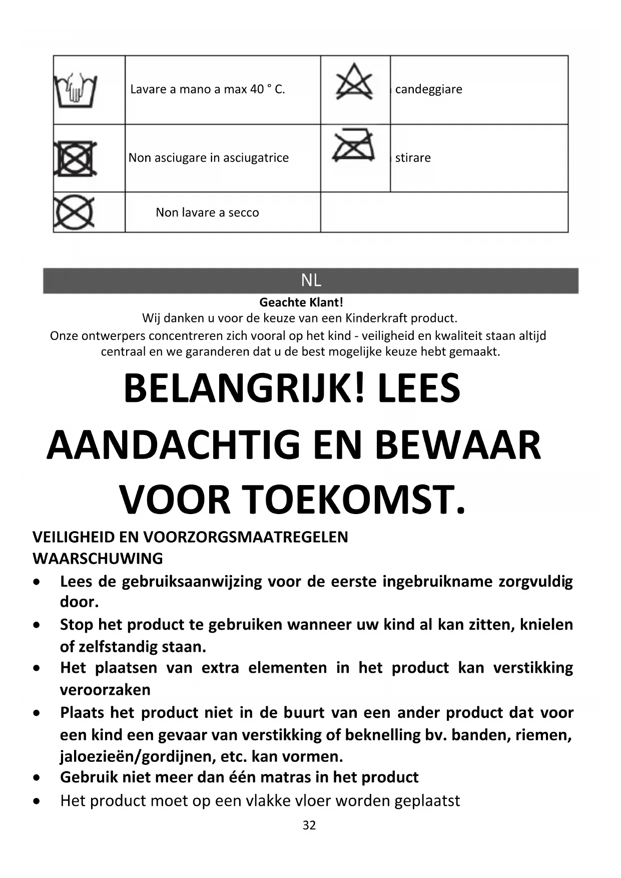 Geachte Klant! Wij danken u voor de keuze van een Kinderkraft product. Onze ontwerpers concentreren zich vooral op het kind - veiligheid en kwaliteit staan altijd centraal en we garanderen dat u de best mogelijke keuze hebt gemaakt. BELANGRIJK! LEES