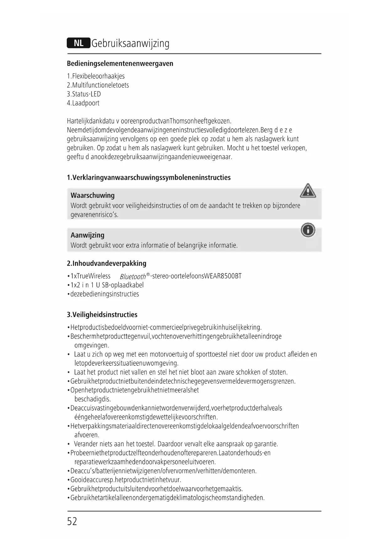 GEBRUIKSAANWIJZING WEAR8500BT THOMSON