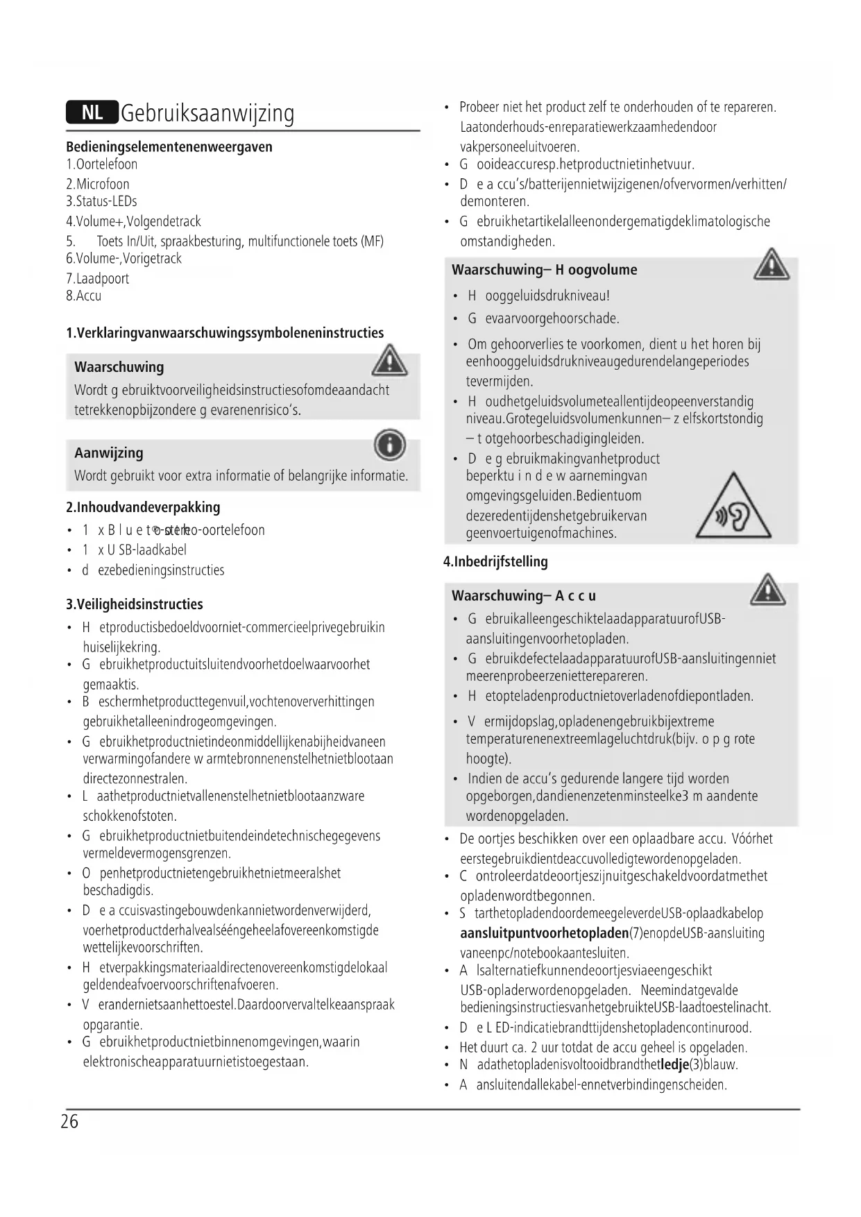 - Degebruikmaking van het product beperkt uindewaarneming van omgevingsgeluiden. Bedient uom deze reden tijdens het gebruik ervan geen voertuigen of machines.