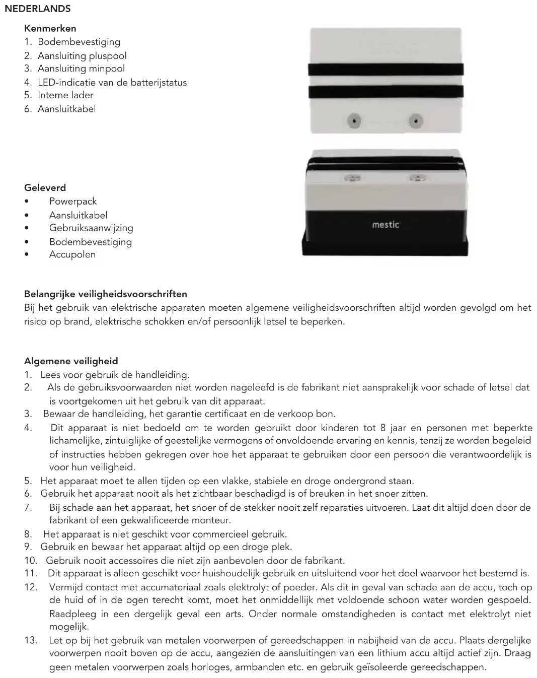 MPM-12 - Draagbare batterij Mestic - Gratis gebruiksaanwijzing en handleiding