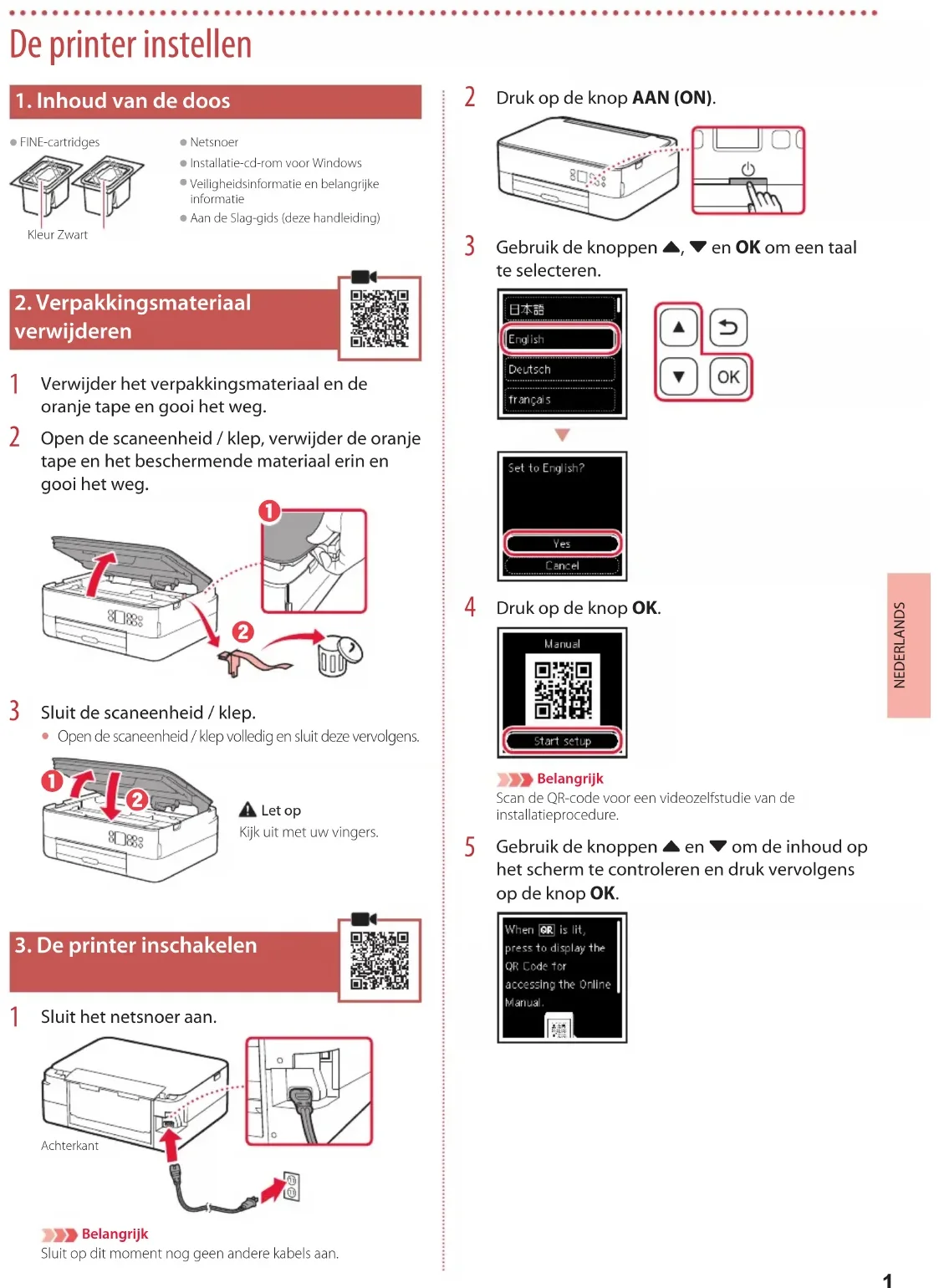 FINE-cartridgesKleur Zwart Netsnoer Installatie-cd-rom voor Windows Veiligheidsinformatie en belangrijke informatie Aan de Slag-gids (deze handleiding)