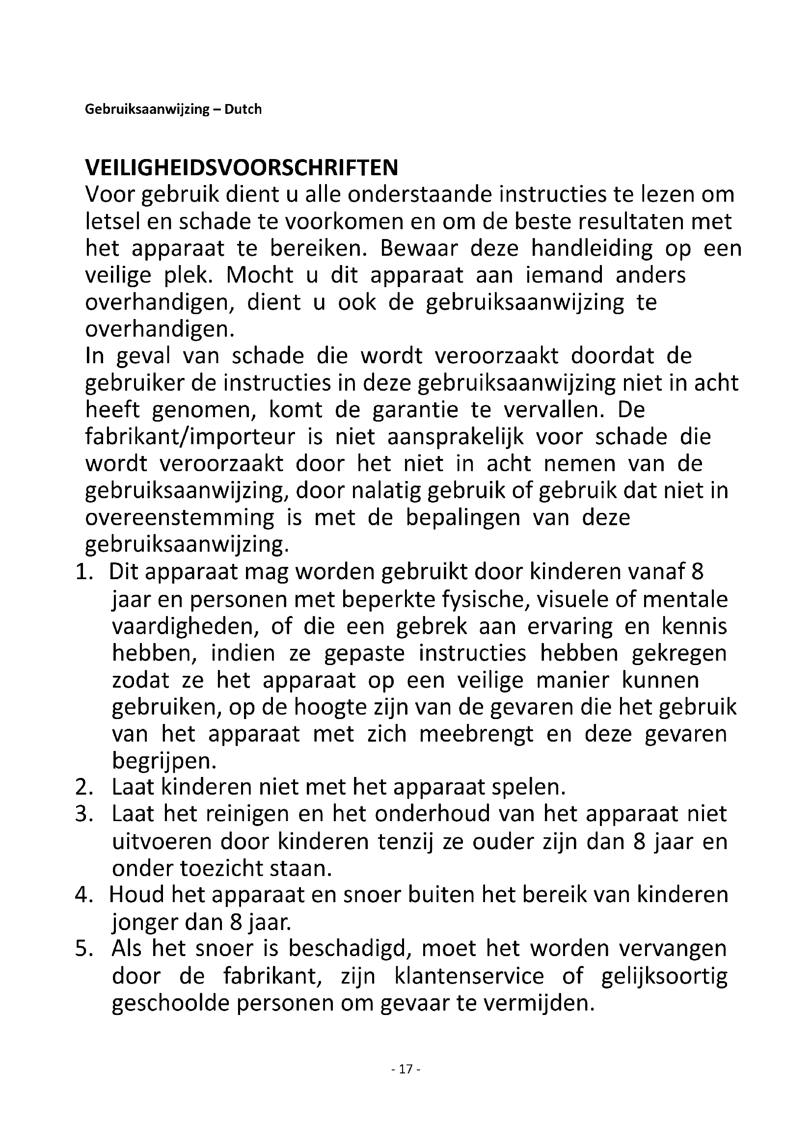 1. Dit apparaat mag worden gebruikt door kinderen vanaf 8