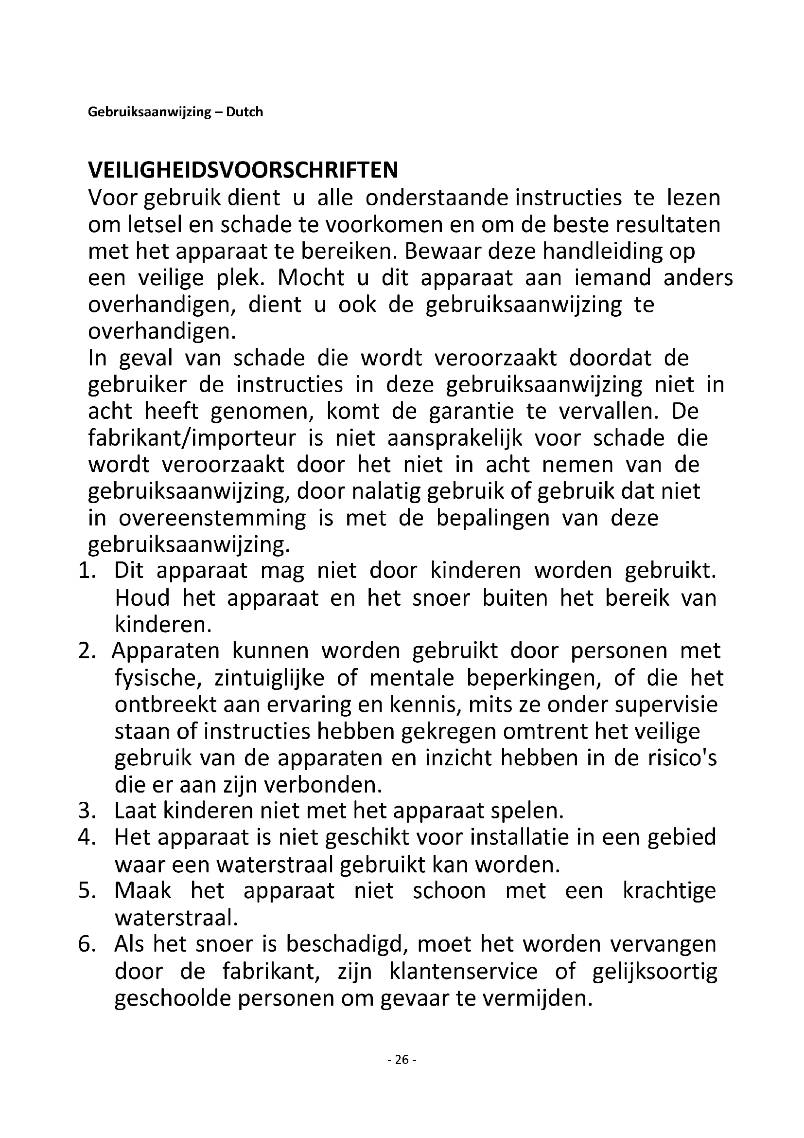 26. Alleen voor gebruik binnenshuis.