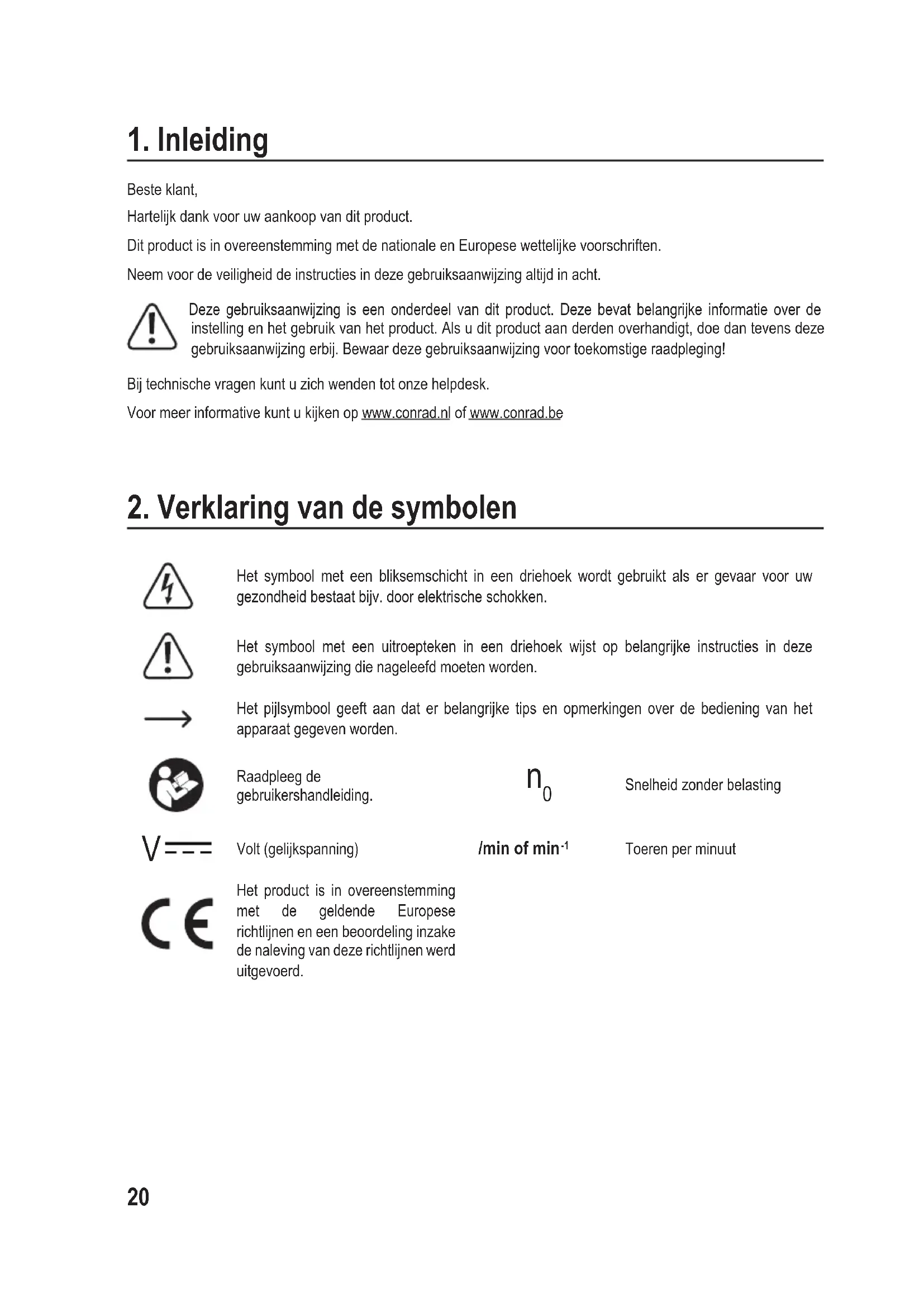 Beste klant,Hartelijk dank voor uw aankoop van dit product.Dit product is in overeenstemming met de nationale en Europese wettelijke voorschriften.Neem voor de veiligheid de instructies in deze gebruiksaanwijzing altijd in acht. Deze gebruiksaanwijzing is een onderdeel van dit product. Deze bevat belangrijke informatie over de instelling en het gebruik van het product. Als u dit product aan derden overhandigt, doe dan tevens deze gebruiksaanwijzing erbij. Bewaar deze gebruiksaanwijzing voor toekomstige raadpleging!Bij technische vragen kunt u zich wenden tot onze helpdesk.Voor meer informative kunt u kijken op www.conrad.nl of www.conrad.be