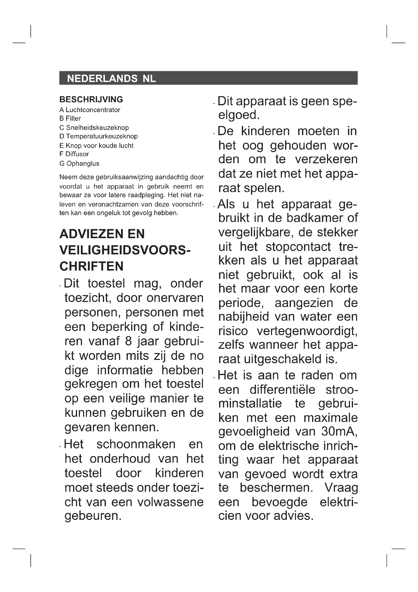 - Het schoonmaken en het onderhoud van het toestel door kinderen moet steeds onder toezi- cht van een volwassene gebeuren.