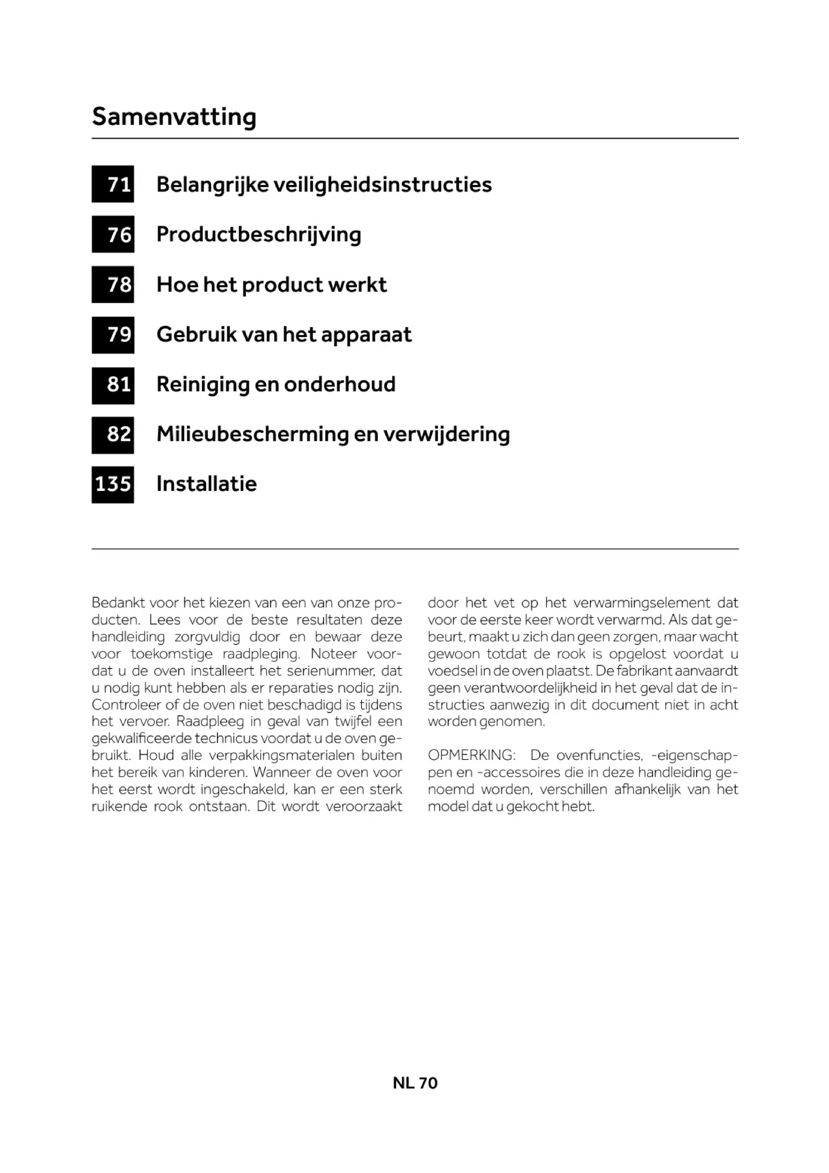 structies aanwezig in dit document niet in acht worden genomen. OPMERKING: De ovenfuncties, -eigenschap