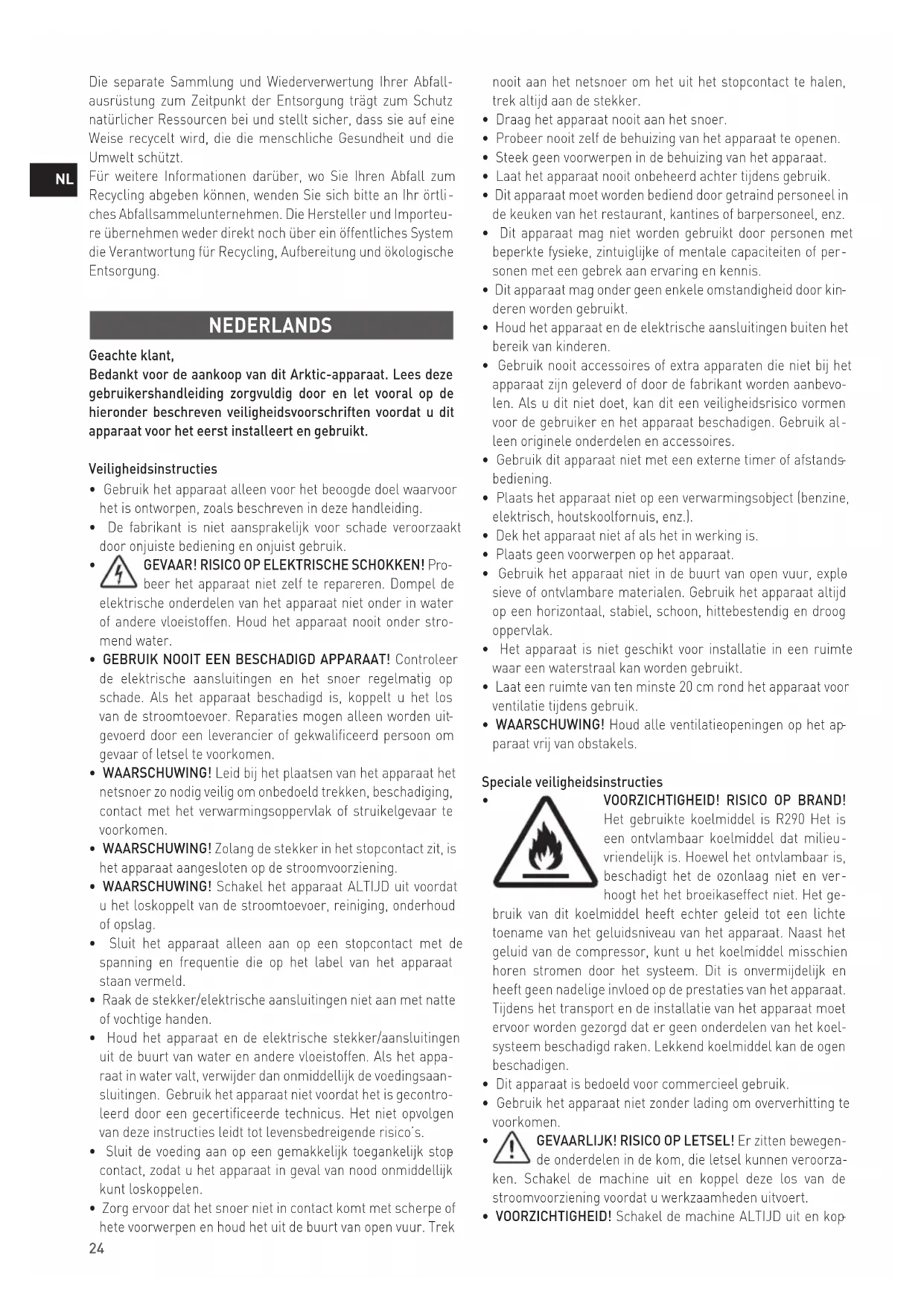 ches Abfallsammelunternehmen. Die Hersteller und Importeu- re übernehmen weder direkt noch über ein öffentliches System die Verantwortung für Recycling, Aufbereitung und ökologische Entsorgung. NEDERLANDS Geachte klant, Bedankt voor de aankoop van dit Arktic-apparaat. Lees deze gebruikershandleiding zorgvuldig door en let vooral op de hieronder beschreven veiligheidsvoorschriften voordat u dit apparaat voor het eerst installeert en gebruikt. Veiligheidsinstructies
