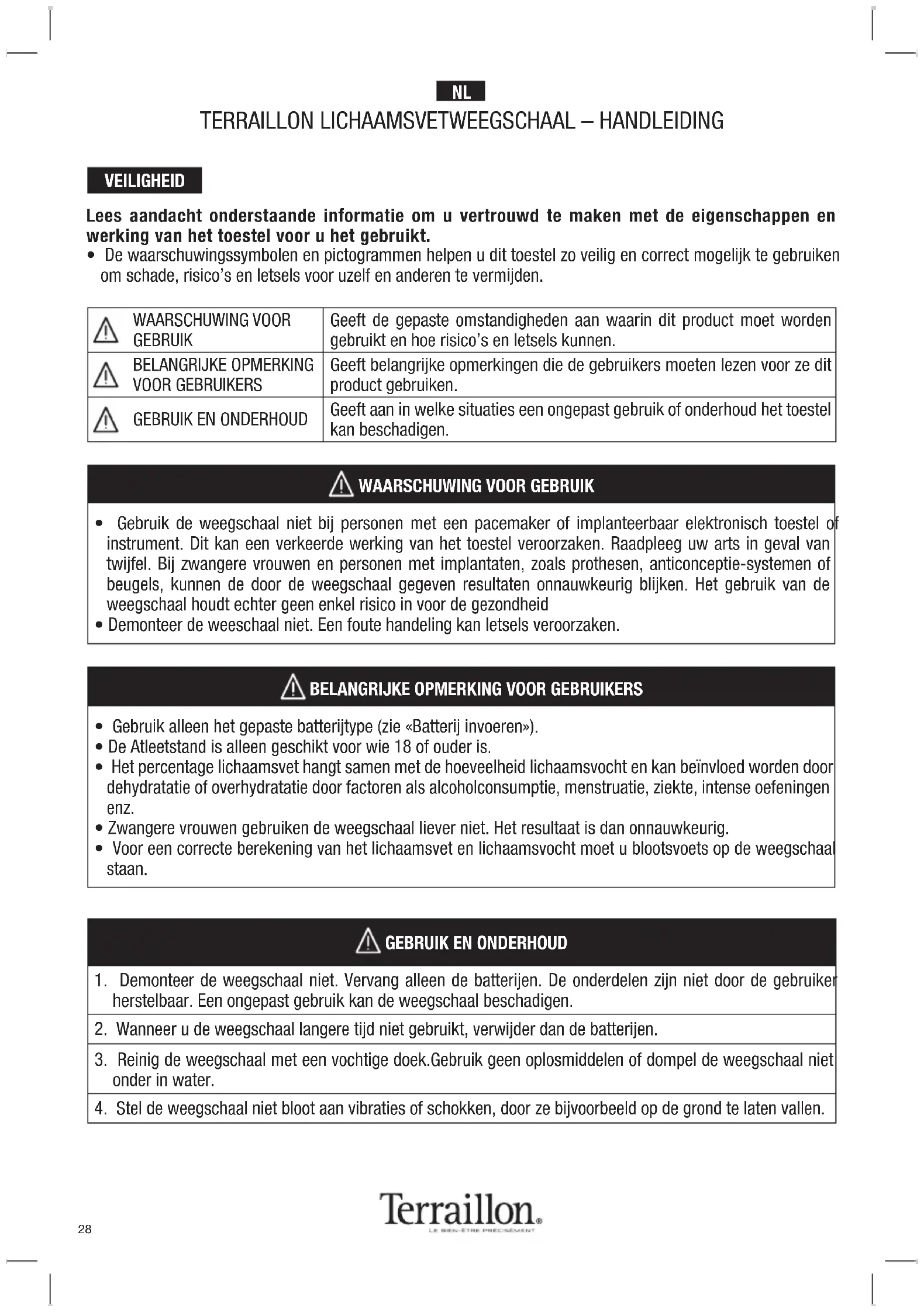 Regular Fit - Weegschalen TERRAILLON - Gratis gebruiksaanwijzing en handleiding