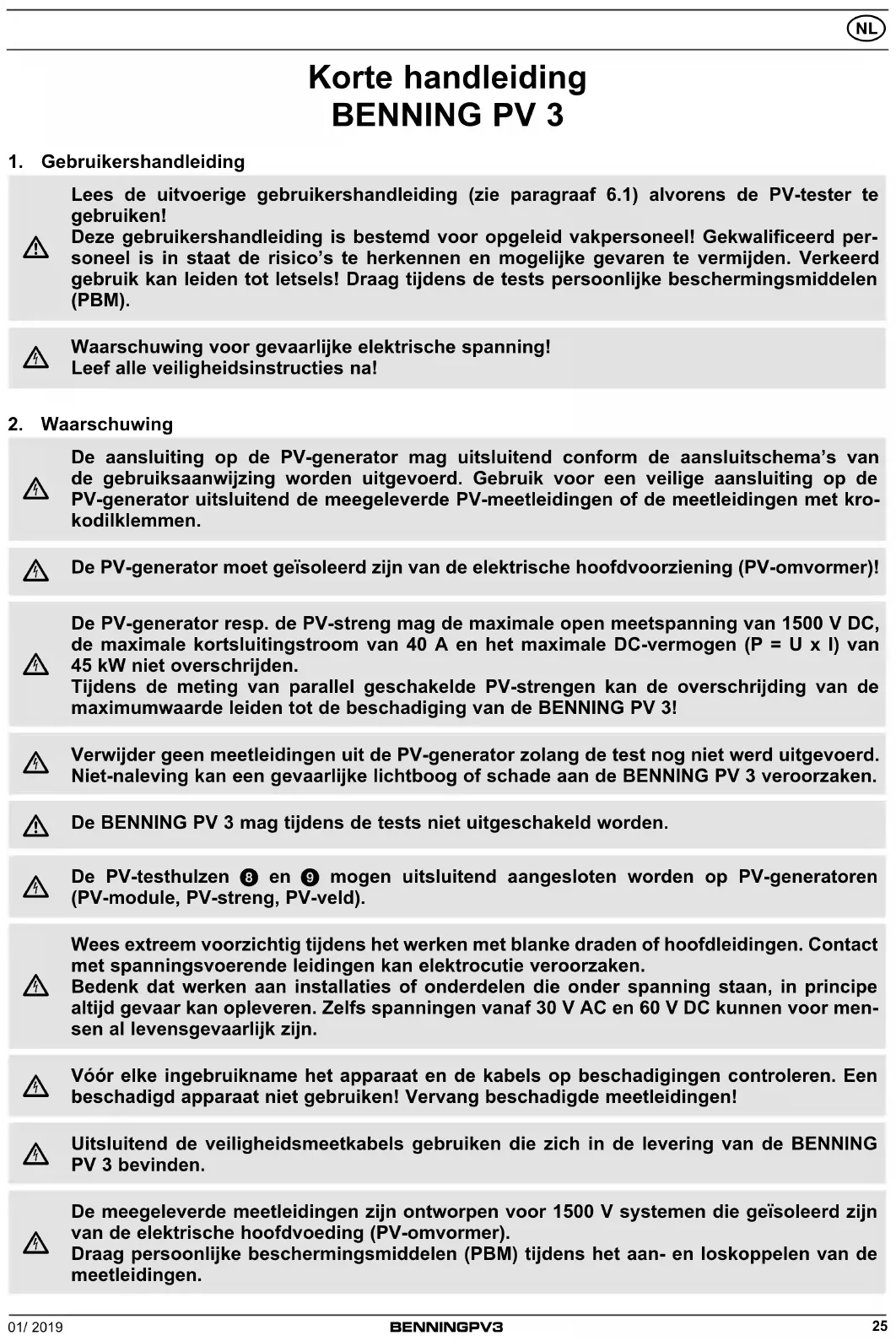GEBRUIKSAANWIJZING PV 3 BENNING