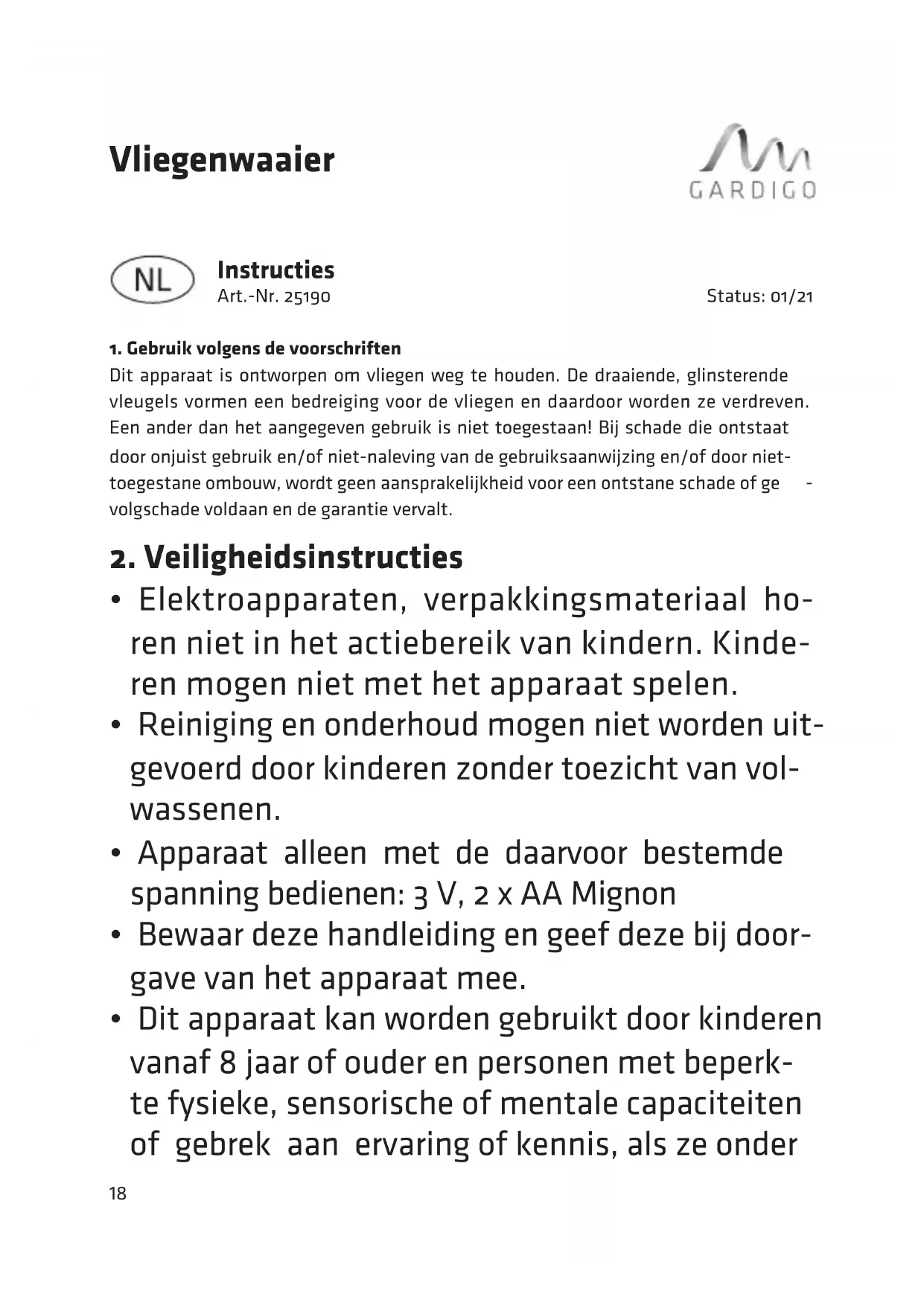 GEBRUIKSAANWIJZING 25190 Gardigo