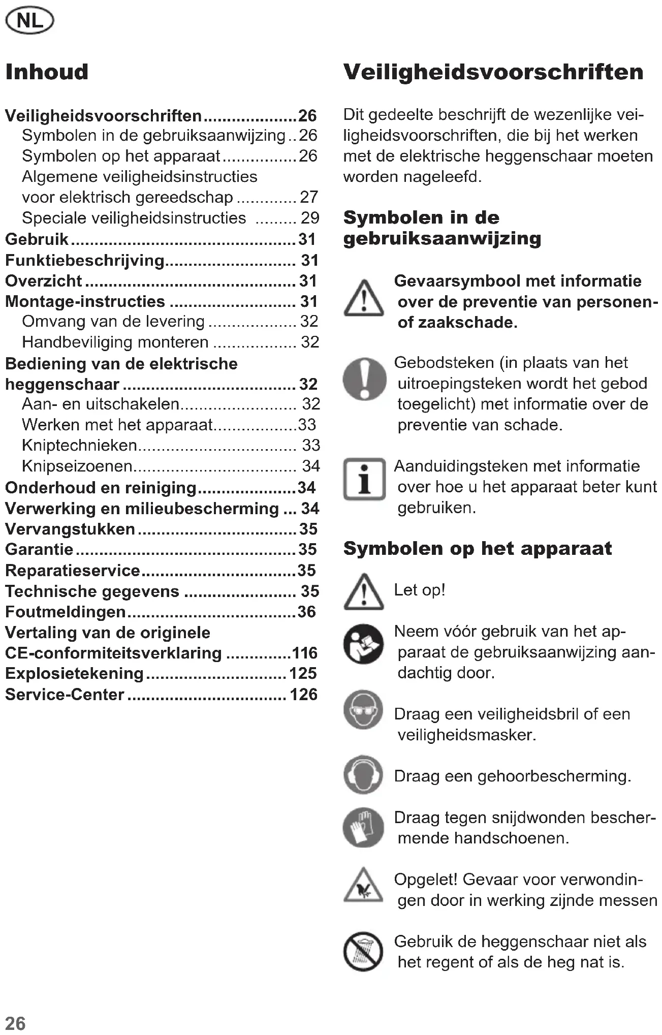 - Inhoud Veiligheidsvoorschriften p. 26