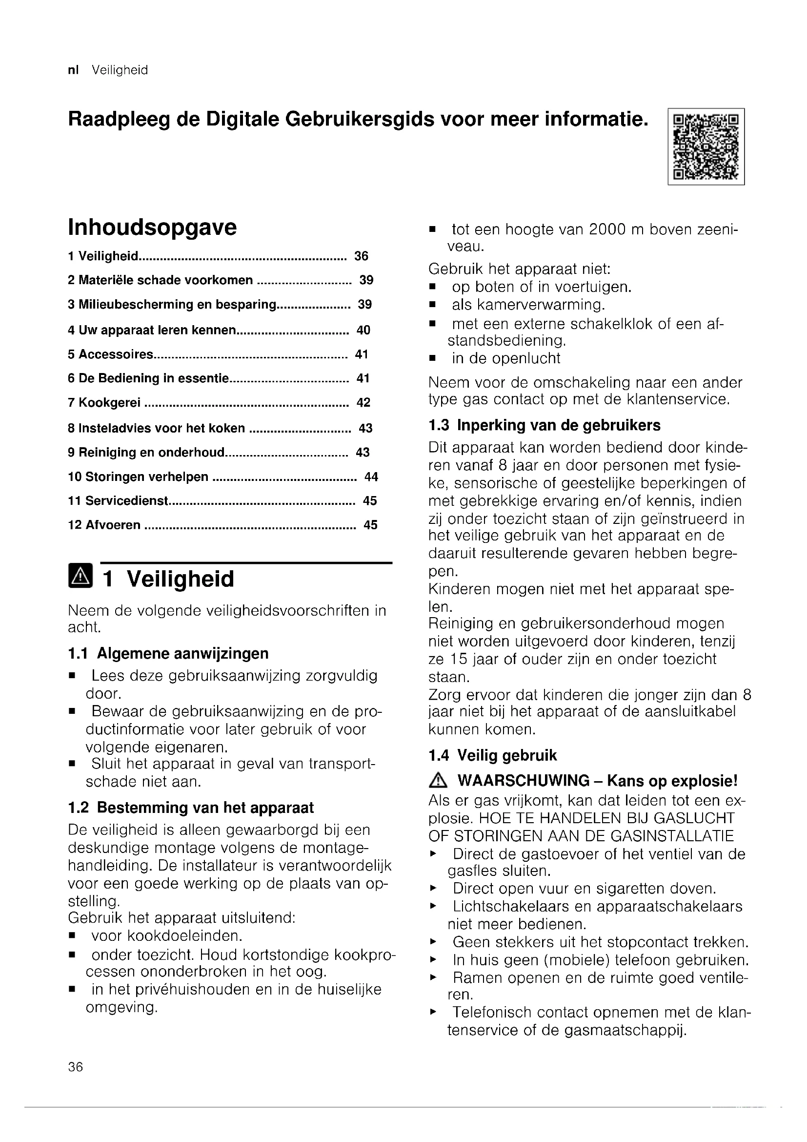- Raadpleeg de Digitale Gebruikersgids voor meer informatie. Inhoudsopgave 1 Veiligheid p. 36
