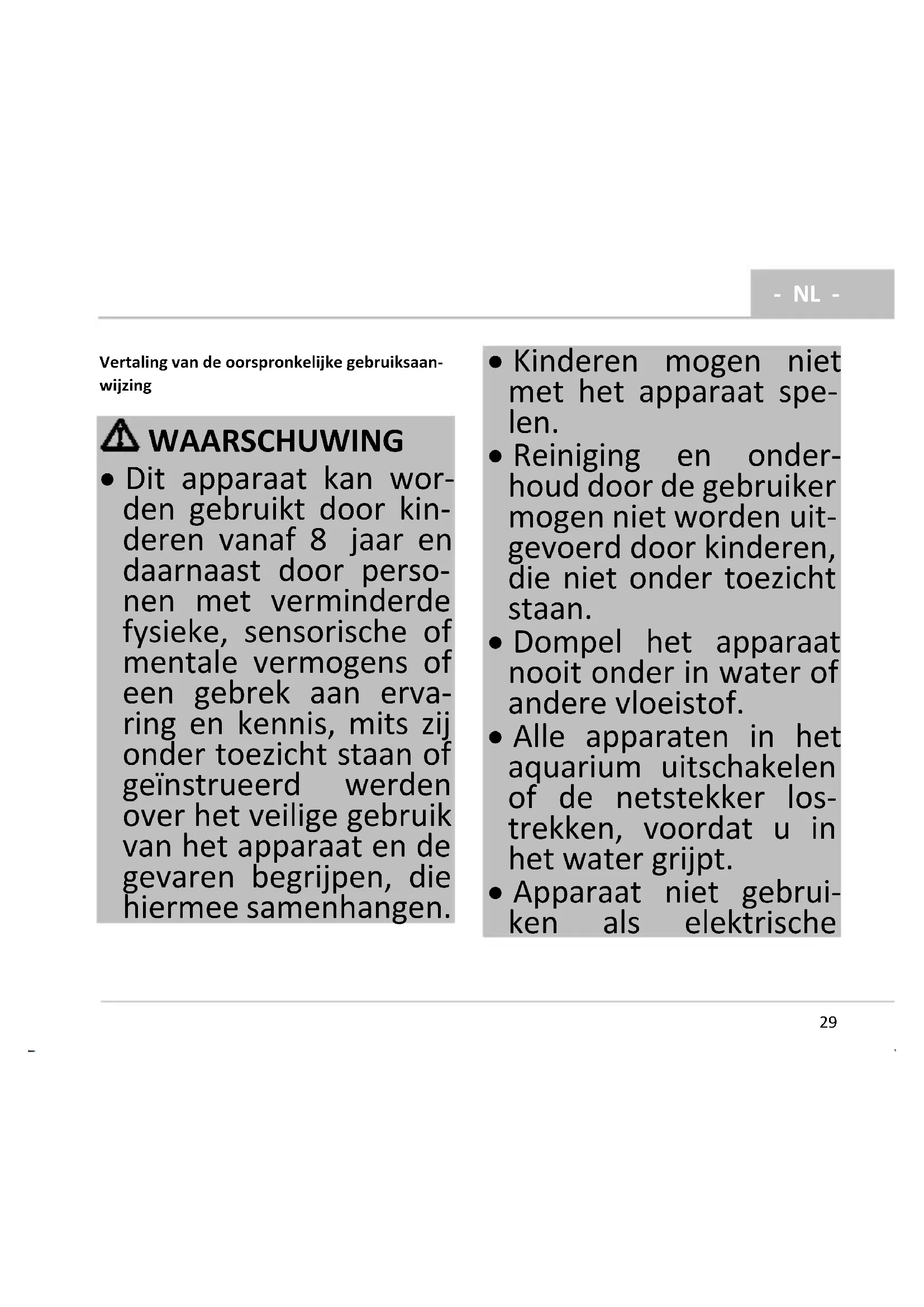 - NL - Vertaling van de oorspronkelijke gebruiksaan- wijzing WAARSCHUWING