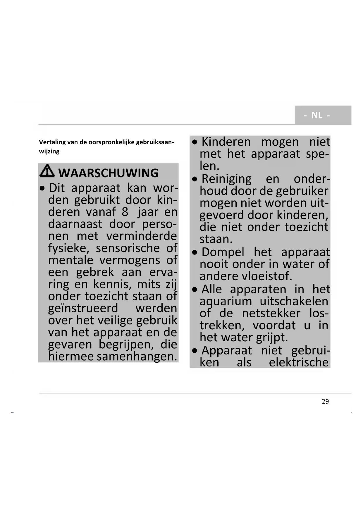 - Apparaat niet gebrui- ken als elektrische- NL -