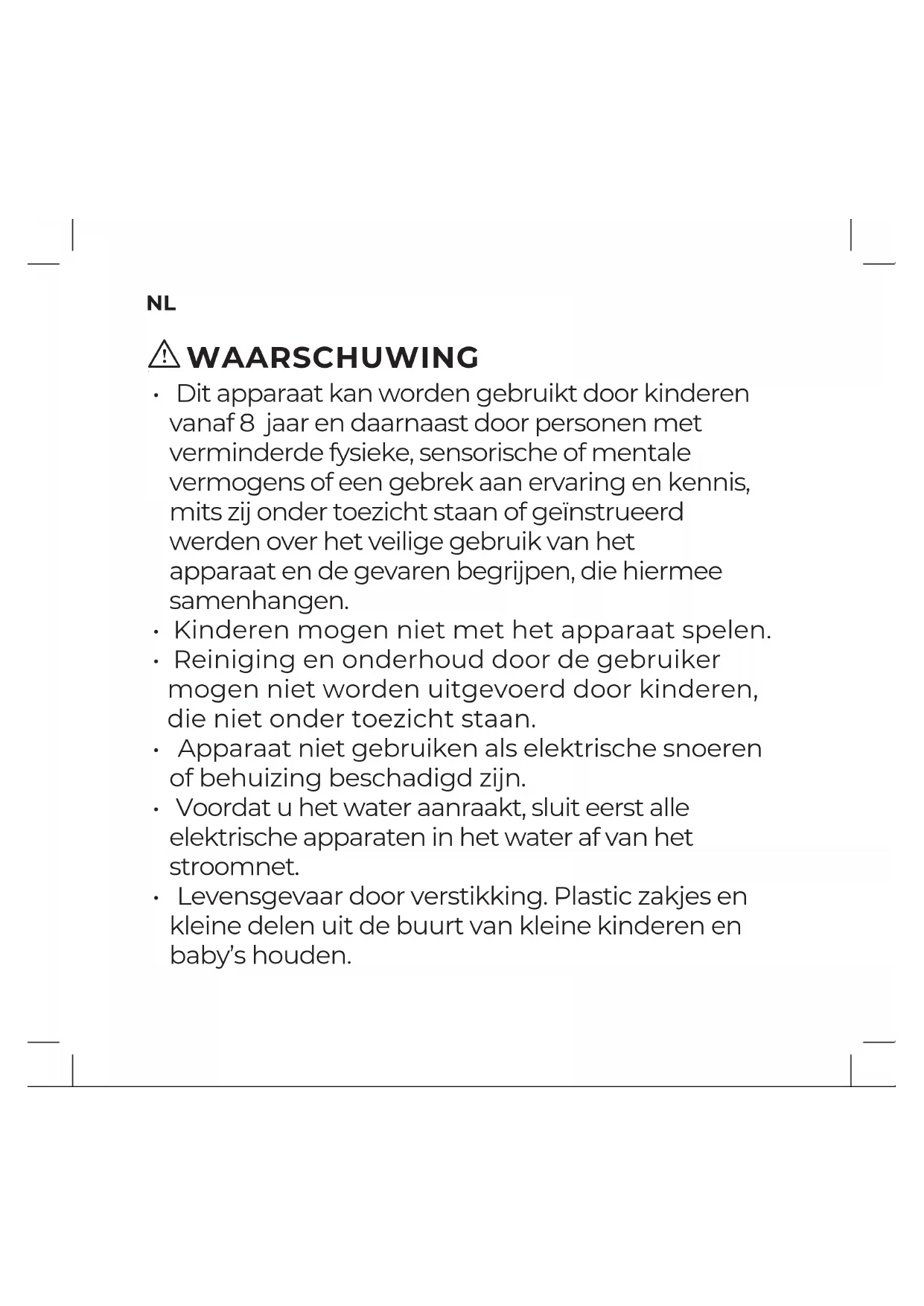 - Dit apparaat kan worden gebruikt door kinderen vanaf 8 jaar en daarnaast door personen met verminderde fysieke, sensorische of mentale vermogens of een gebrek aan ervaring en kennis, mits zij onder toezicht staan of geïnstrueerd werden over het veilige gebruik van het apparaat en de gevaren begrijpen, die hiermee samenhangen.