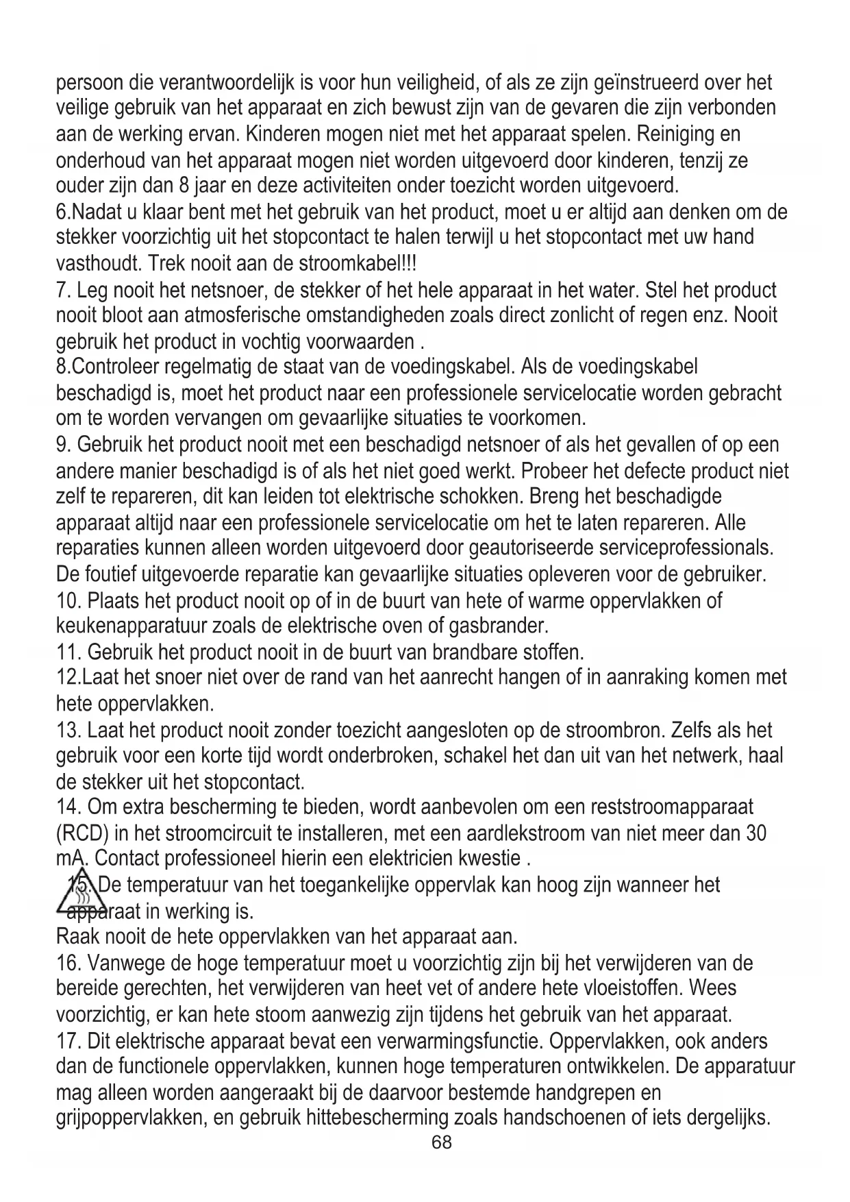 17. Dit elektrische apparaat bevat een verwarmingsfunctie. Oppervlakken, ook anders