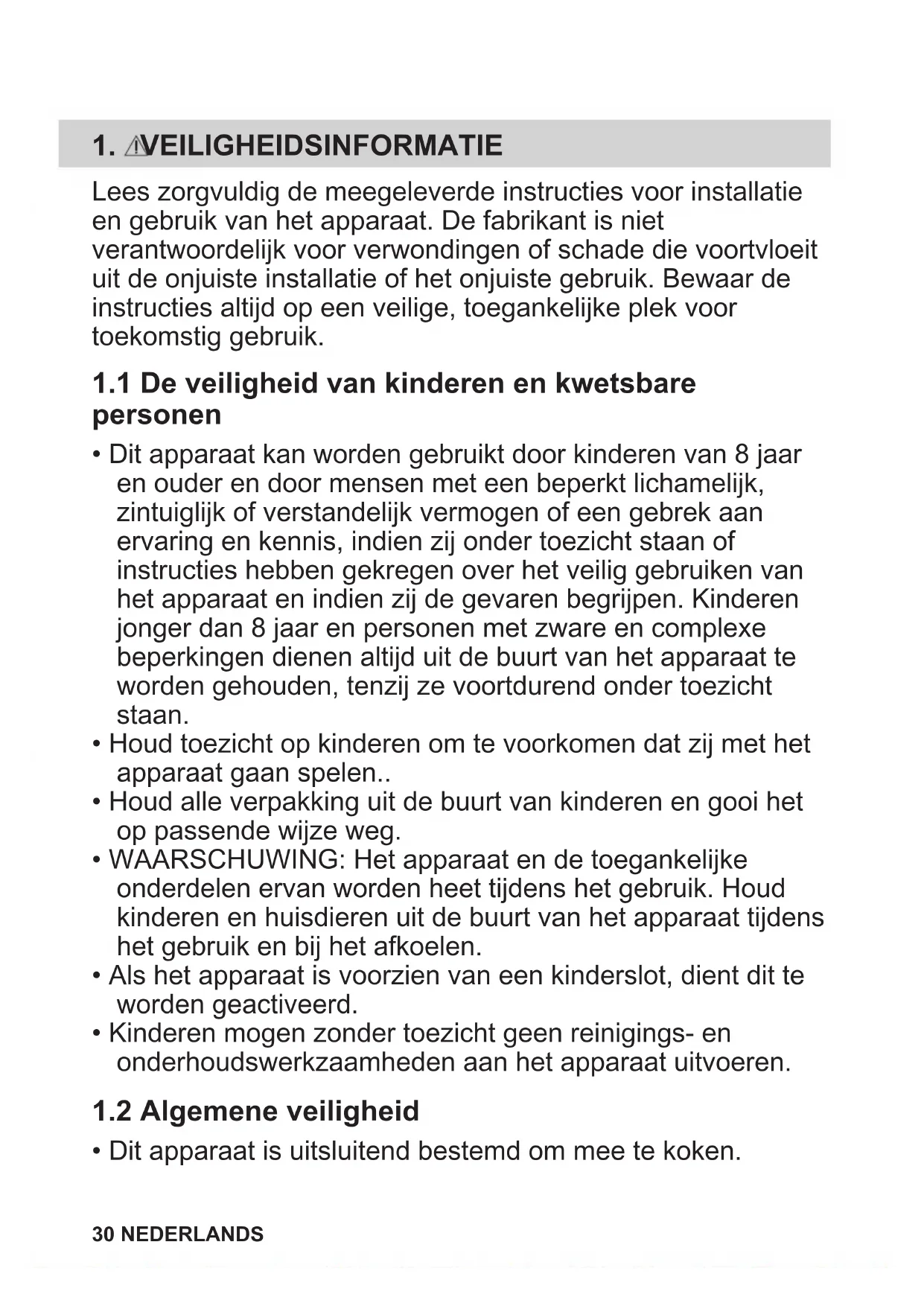 - Dit apparaat is uitsluitend bestemd om mee te koken. 30 NEDERLANDS• Dit apparaat is bedoeld voor binnenshuis huishoudelijk gebruik.